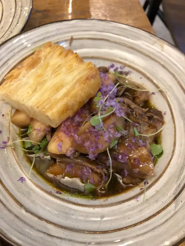 主食大家一致決定選擇自製豬肉腸($136),豬肉腸上面配白靈菇,汁醬主要用了洋蔥及芥末籽醬煮成,豬肉腸皮脆肉香,豬肉的味道非常濃郁,經過細味咀嚼後,回味中還保留肉汁的香濃,芥末籽醬汁帶出香甜美味,減輕了肉腸的鹹味,加上一片片的白靈菇,吃起來又不會太單調,爽口菌味馥郁,越食真是越滋味。