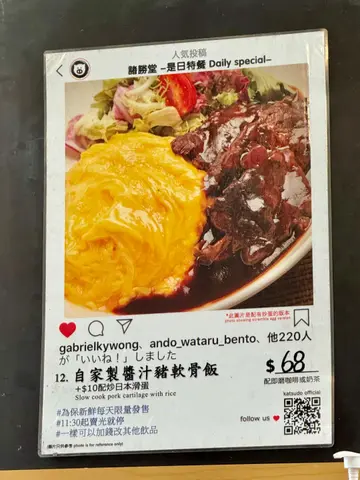 今日同仔兩個下午茶,經過咁多次,今日第一次入嚟試下,呢個下午茶餐有啲貴$66,但係物有所值!肉眼豬扒炒滑蛋印尼撈麵,個名夠晒吸引!豬扒嫩到出汁,滑蛋溜滑到夾唔穩,撈埋帶少少辣嘅印尼麵,香茅同醬料味好出,每啖都係層次,辣度啱啱好,食完仲想舔埋個碗!…查看更多