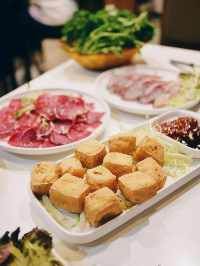 今次我地去左銅鑼灣一間單點火鍋店食飯,上網見佢地個湯底幾正,所以就黎試下啦,餐廳每位醬料小食費$24,小食就係青瓜螺肉一份😄松茸野菌雞鍋($298)呢個係店員介紹既季節限定鍋,個湯底材料好豐富,佢係勁多菇,雞都有唔少,裡面有松茸片,野生雞樅,牛肝菌等野菌,個湯底適合秋冬進補,養顏暖身🍄🍄🟫🐥自家炸響鈴($75)佢好夠脆,放湯索曬d湯味好正😋 特選牛頸脊(小)($228)特選牛頸脊細份適合2個人食,塊牛帶有適量筋膜同油花,比較薄切,牛肉嫩口同埋牛味濃🐮鮮蝦雲吞拼水餃($75)一份鮮蝦雲吞拼水餃各有4粒,雲吞佢粒鮮蝦大大隻,仲有豬肉同香菇,咬落多汁,隻蝦又彈牙,水餃就係豬肉雲耳等配料,皮薄餡鮮🥟駌鴦牛柏葉($108)可以一次過食曬黑白牛柏葉,黑牛柏葉一滾即熟,脆中帶韌,白牛柏葉就比較爽脆細膩👍🏻四寶丸($88)四寶丸分別係牛丸,芝士墨魚丸,梅菜豚肉丸,鮮蝦丸,全部都係手打丸,牛丸牛味香濃,口感彈牙,芝士墨魚丸入面爆芝,有d芝士竹輪既感覺,要小心熱,佢煙韌微彈有嚼勁,梅菜豚肉丸比較特別,落左梅菜有d梅菜香味,甜甜地帶點鹹,鮮蝦丸都係好彈牙,鮮甜爆汁🍡呢間單點火鍋既食材都幾靚,同埋野食都有大份細份揀,兩個人去食都可以叫到多種類,個季節限定湯底都值得一試,真係爆多菇好足料👏🏻…查看更多