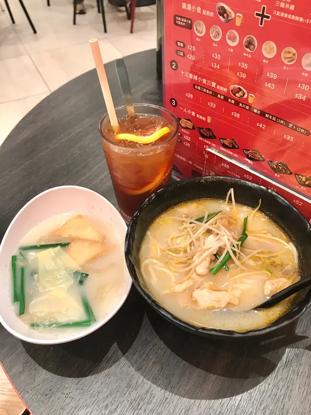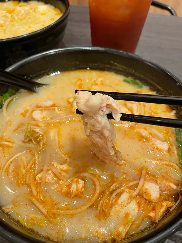 平時都成日食譚仔,今次試左三哥新岀嘅鮮檸清湯魚片雞肉雲吞米線轉蒟蒻麵。先讚嘅係個湯底唔錯,有d似魚+雞湯味,同埋加左鮮檸同檸檬葉令湯嘅味道更有層次。雞肉,魚片同雲吞份量都唔少,食哂麵都仲有餸未食完。讚完都有啲嘢彈下首先係如果想食呢個湯係要跟佢個set,冇得自選餸。第二係魚片仲有小碎骨,食嘅時候要小心啲。第三係雲吞係急涷雲吞,個皮有啲厚。最後一點係個湯都幾油下,唔好俾鮮檸個fresh味扼到🤣🤣因為個湯飲落真係好好飲,油膩感唔重,但其實睇到d油係多過其他湯底好多…查看更多