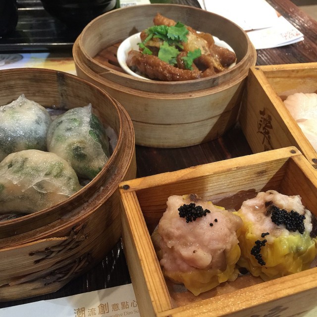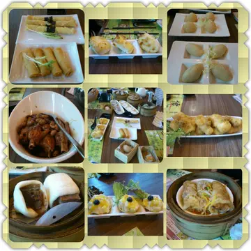 在這間餐廳和小學同學聚會,東西好吃的很好吃,伏的伏很大。精選推薦:1. 流沙煎堆(右上,後):外面炸得香口,配上白芝麻,喜歡吃香脆東西+芝麻的人(即係我)不能錯過。店外剪報圖中是黑芝麻餡,但我們當天吃到的是奶黃,個人喜歡奶黃啊,所以又加分。而重點是,真會流出來,當心燙口。2. 炸海鮮卷腐皮卷(左上,後):外皮超脆,裡面的蝦很爽口,我們的翻炒之選。3. 春卷(左上,前):又是一項脆口取勝的點心,翻炒之選also。伏出沒注意:1. 香芒沙律盞(中下)*頭號大伏必選,賣相相當吸引,可惜沙律醬太多,酸得直皺眉。補充一句中肯的,底下的盞是好吃的。2. 腸粉類:餡太少,皮在底下打了摺,吃起來嫌太厚。3. 炸茄子:炸得很好,茄子也熱軟,敗筆在於加太多鹹蛋黃在外層,完全蓋過茄子味。4. 蝦餃:外皮偏厚,而且蒸太久,不過蝦很爽口。創新嘗試:蒜茸芝士焗饅頭:類似蒜茸多士,不過不香脆,反而是軟身的饅頭,蠻特別,個人蠻喜歡。…查看更多