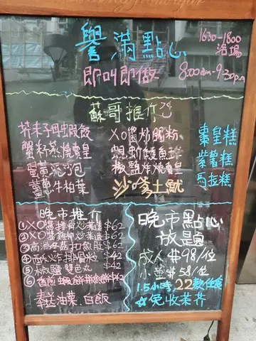 發現街上愈開愈多包點XX之類既點心外賣店,但我覺得飲茶食點心一定要坐低食先有feel,呢晚收工後響奧海城買完衫,就約左細佬一齊食點心當晚餐。舖頭夜晚客人唔太多,我地唔洗排隊就入得。發現原來舖頭仲有做點心放題,好似100左右一位,好平,不過我地2個都on diet中,所以就散叫。基本點心種類齊全,價錢都幾平。譽滿鮮蝦餃:蝦餃皮光滑亮麗,厚薄適中,餡料有蝦有肉,唔洗點醬汁,就咁食都唔錯。白玉棉花雞:雞肉用上雞扒肉,蒸完好滑,底既豬皮蒸到好淋,吸哂D汁。香辣XO醬腸粉:呢個幾好味,餐廳有用蝦放埋落去炒,腸粉全部抄到兩面金黃色,食落鹹香,簡單就是美。馬蘇里拉芝士蝦春卷:春卷炸到好脆,但食落又唔係好油膩,芝士同蝦都幾夾。雪山酥皮叉燒包:個皮略厚,味道還好。…查看更多