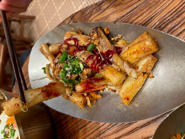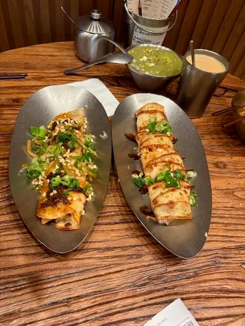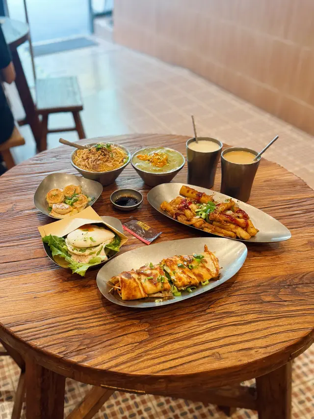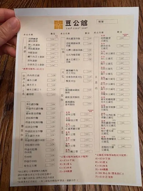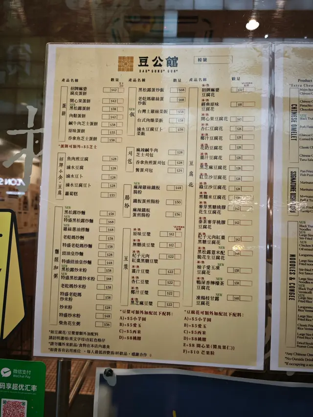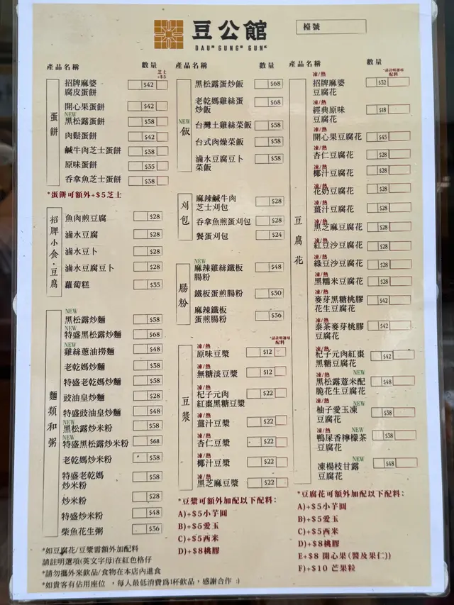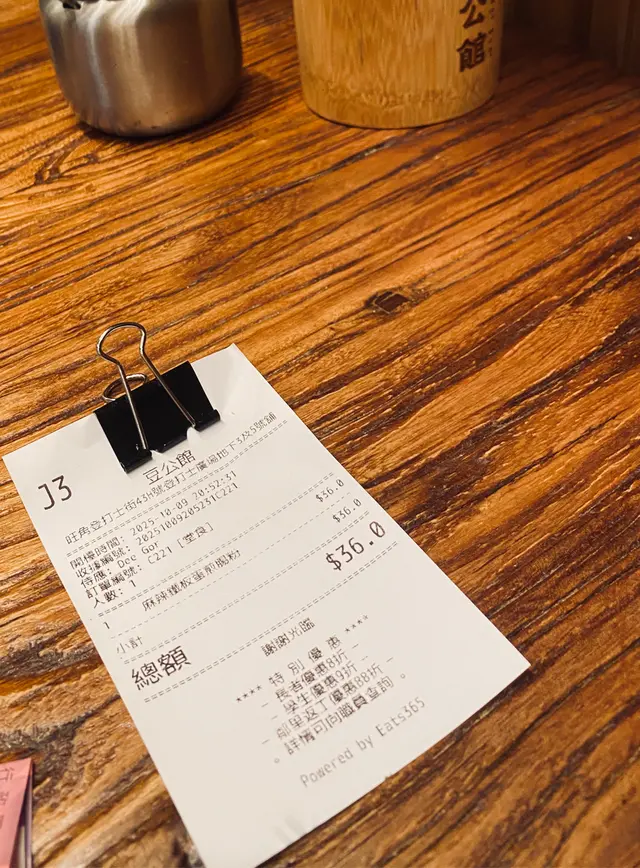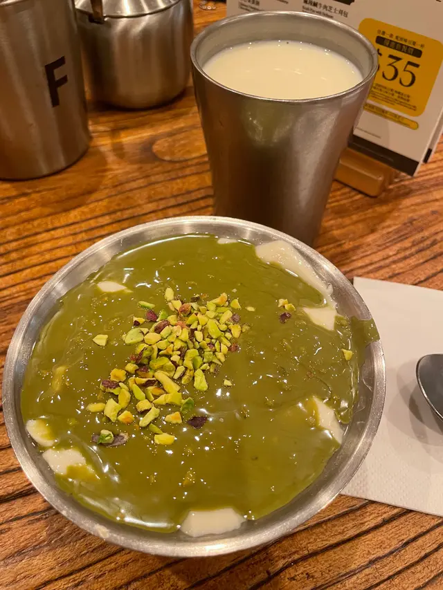 今日約咗同事做嘢前食啲嘢見到最近新開咗呢間豆品店由細到大都鍾意食豆類製品嘅我揀咗試吓 有別傳統豆品店嘅裝修呢間比較有現代感 淺木色系為主令人感覺乾淨舒服 嘢食種類唔多有啲似台灣早餐幾點都食到- - - - - - - - - - - - - - - - - - - - - - - - 1. 老乾媽炒米粉老乾媽本身係辣醬 可以用嚟撈飯唔算好辣 帶有少少花椒麻辣同埋注意:幾重豆豉鹹香XD個人係幾鍾意 撈落米粉正過撈飯即叫即喺鐵板上炒 熱辣辣咁上枱米粉質感食落唔會太硬2. 肉鬆蛋餅蛋餅都係即叫即喺鐵板上煎先將蔥同蛋汁倒落蛋餅見到成塊煎蛋喺蛋餅上形成最後加咗好多肉鬆製成蛋餅外皮煎到金黃 內餡豐富淋咗少少甜甜哋蛋餅醬油膏提味3. 黑芝麻豆腐花其實係好鍾意食豆腐花同黑芝麻覺得兩樣黑白相間配搭加埋好夾最欣賞佢面頭灑咗好多黑白芝麻入口嗰陣食到豆腐花嘅滑嫩伴隨黑芝麻醬散發嘅芝麻香仲有芝麻碎碎 又多一層口感4. 熱杞子元肉紅棗黑糖豆漿/熱薑汁豆漿杞子元肉紅棗黑糖豆漿色澤較沉棕色;杞子、紅棗點綴令人覺得溫暖呢杯加咗黑糖 所以帶有少少甜味薑汁豆漿可以飲到天然豆漿原味少少薑汁辛辣 好啱養生/天氣凍飲…查看更多