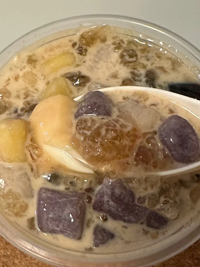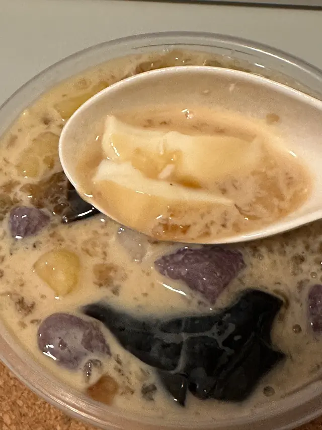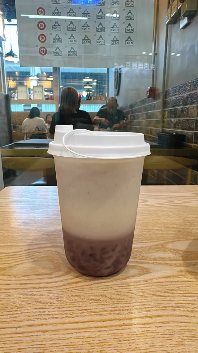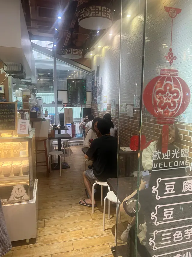 食完飯覺得唔系好夠喉,行過兩間舖叫埋個甜品食,過吓口癮咁小店座位唔多,座位之間嘅距離都幾近,亦都比較迫,所以我哋叫咗外賣走椰汁紅豆豆乳$18椰汁味都幾重比較稀,飲落唔會將住個口紅豆都幾淋甜甜地幾好食,無冰塊豆乳味道幾濃郁牛乳麻薯豆腐花$26另外叫多咗個麻糬豆腐花,驟眼睇其實唔係好睇到啲麻糬喺邊,因為豆腐花同麻糬嘅顏色太相似食落麻糬同埋豆腐花嘅比例,大概係一比二麻糬有奶香幾好食,豆腐花就普普通通,豆味唔重…查看更多