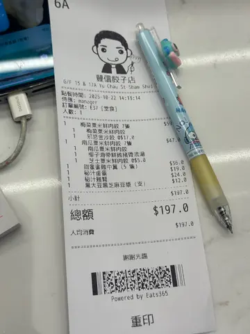 豐信餃子相信大家都聽過,我每隔一排就會幫襯,每次飯點時間都一定大排長籠。但都無阻我想食佢嘅心!🥟香菇鮮肉餃併芫茜鮮肉湯餃7隻 $47★★★★☆其中最出名嘅椰子海帶鮮豬骨湯,次次叫湯餃都會飲哂呢碗湯!一入座已經有好幾款餃子售罄,最想食嘅西洋菜、椰菜都冇哂!香菇鮮肉餃皮薄肉餡好爽彈,菇味好香,配湯一流;芫茜餃真係睇人口味,我自己係芫茜控覺得超級之香,芫茜味超級突出,食落係大滿足!🥟紫菜鮮肉餃併麻辣白菜煎餃 10隻 $79★★★★☆除左煎餃我仲加左$17蚊加埋個金沙餃!真係超級邪惡,每隻餃子香脆仲鋪滿哂咸蛋黃,咸香又沙沙嘅口感,好正!叫到呢個時間已冇咩餃子選擇,紫菜超爆餡,煎都幾夾,我最鍾意加埋佢個辣菜脯一齊食,超惹味。麻辣第一次試就出奇地好鍾意,有麻辣香(偏向大陸風味),但唔會太辣,一般人絕對接受到!🌟涼拌皮蛋 $22★★★★☆呢個係我每次黎都必叫嘅小食,皮蛋汁係甜口嘅醋汁,食落係超級開胃!佢仲配埋個醃薑,呢個又係我Favourite,單食配餃子、配皮蛋都得,解膩一流!🌟秘汁金錢展 $40★★★★☆呢個金錢展好厚實有一定口感,食落去札實但唔韌,佢已經滷得好入味。一碟都有6-7片,絕對有驚喜!🌟羅漢果金草茶 $12★★★★☆呢個價錢有一大枝真係好抵飲,加上食煎餃考慮到熱氣呢個問題,呢款就有清熱效果,完美。總結:每款餃子都好食,湯同煎各有特色,最好兩樣叫齊!建議大家早D食,因為8點左右已經得番1-2款餃子。…查看更多