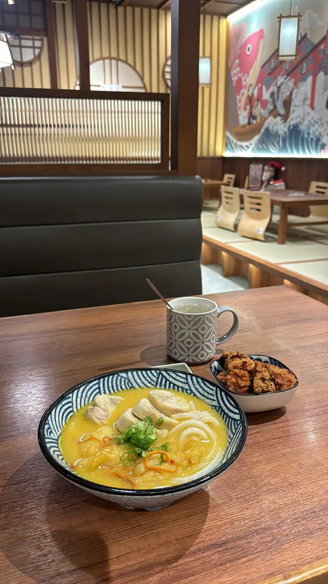 晏晝經過見到門面幾靚,價錢又幾合理就入咗去試吓!😋入邊仲有榻榻米位置,幾靚 好好打卡😍同埋冇乜人,始終個位置都幾入,所以可以坐好耐叫咗碗花膠雞烏冬$88仲有小食炸雞三件個人感覺炸雞仲好食過碗烏冬😹好入味仲好脆!其實碗烏冬都OK不過唔算好入味,淡淡地但係花膠份量都好足夠!下次經過會再食~查看更多