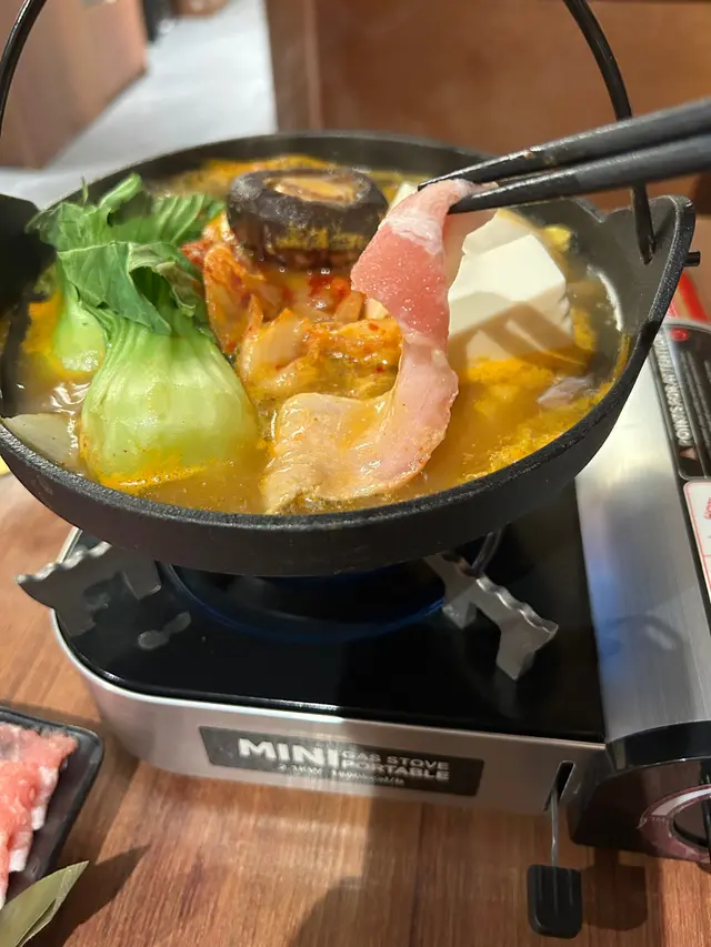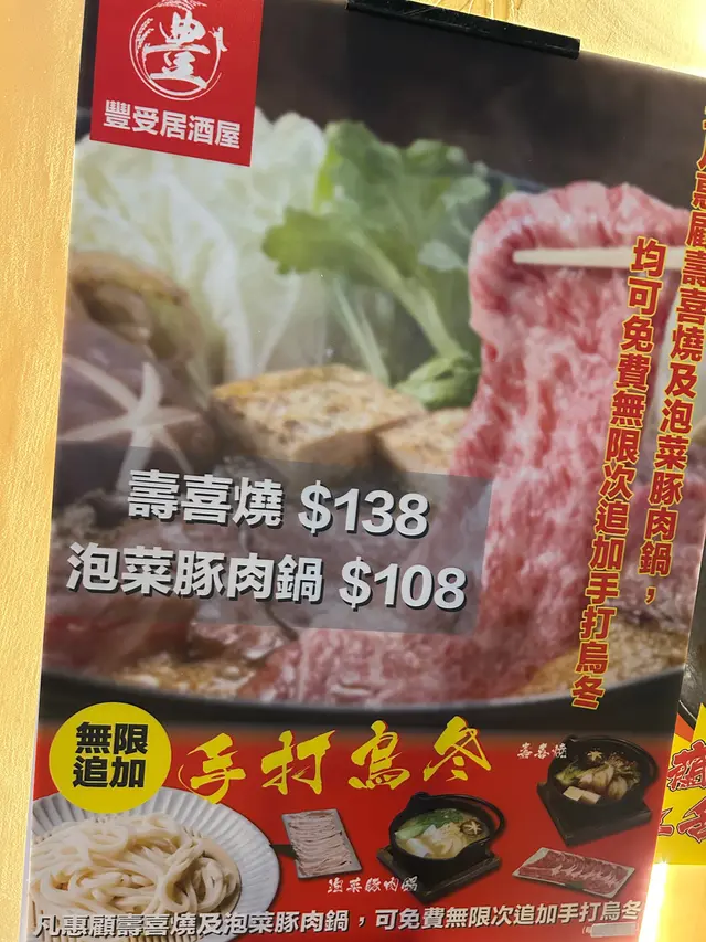📍豐受居酒屋餐廳位於觀塘鴻圖道83號東瀛遊廣場地下A一個人放工悶悶地想食個孤獨飯,經過呢間居酒屋,感覺幾好,天氣又凍凍地,又想食個熱辣辣豚肉鍋,所以決定入去試試。餐廳很有濃厚日式味道,以木系為主題,感覺很暖和。餐廳提供兩個鍋物:壽喜燒$138 和泡菜豚肉鍋$108我點咗泡菜豚肉鍋 ,最吸引喺烏凍無限任添。☀️☀️☀️☀️☀️☀️☀️☀️☀️☀️☀️☀️☀️☀️☀️👍👍豚肉出沒注意@滿滿一碟豚肉好吸引,油脂和肉嘅比例平均,不會太肥也不會太廋啱啱好,肉質細嫩,淥一淥幾分鐘已經鮮甜無比,口腔散發豚肉香味👍讚鍋物中有大量蔬菜🥬,湯底有泡菜微微辣,味道適中 ,唔需要再蘸醬料 ,感受到味蕾衝擊整個口腔 ,回味無窮。無限烏凍添加系列@粗身烏凍麵條🍝爽滑彈口 。細細一碗已經夠一個人份量,本身細食嘅我 ,不需要再添加了 。額外點咗杯飲品@紫雨 。名字特別,原來喺蝶豆花溝雪碧 ,滴啲檸檬汁,份外醒神。查看更多