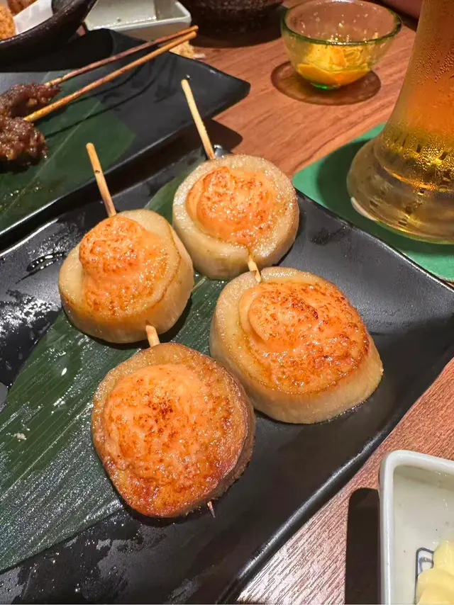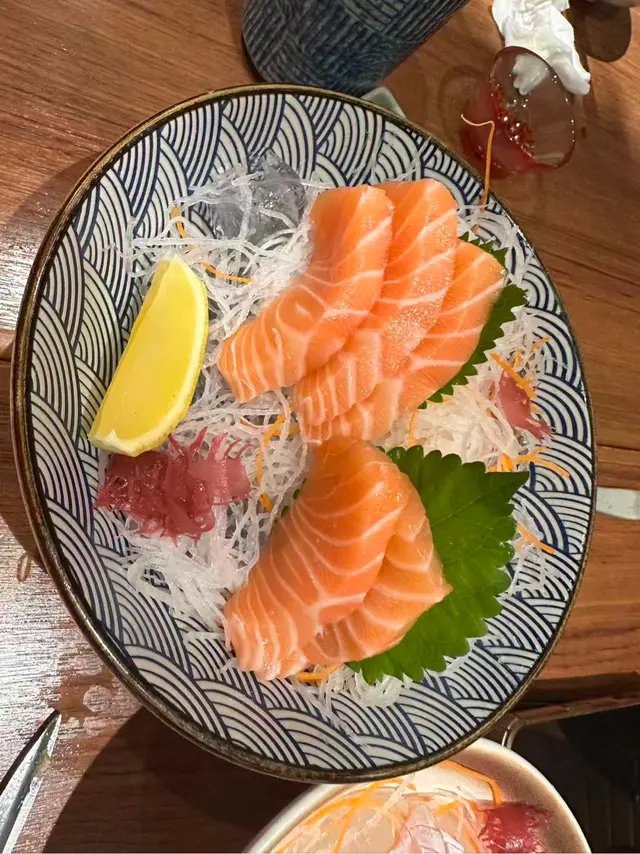 觀塘寶藏小店!openrice上面搜到看到環境似乎不錯適合小酌,周邊的隱藏小店都在工業大廈裡面,這個在馬路邊,地方好找不隱蔽。主要酒店對面就可以直接看到,不需要google map. 位置滿分!由於想要喝酒所以點了一些串燒加炸物,上菜之後很驚喜,比我預想的要漂亮的多!強烈推薦的是這個三文魚刺身,好久好久沒吃到性價比這麼高的刺身了!肉質肥美,入口即化,店員推薦我們可以試試三文魚腩,後來加多了一份,果然沒失望,有種吃到嘴巴裡奶油炸開的絲滑感,給他個好評!沒有推薦錯!三文魚愛好者狂喜!!(太好吃了導致沒拍上照可惜了)天婦羅炸蝦跟在日本吃到的沒有太大的區別,可以看得出師傅很用心了。比較意外的還是這個雞腿菇串燒,人怎麼可以聰明成這樣,完完全全把菇的汁水鎖在裡面,上面的醬汁又能完美的覆蓋整個食材的味道。這個我也很愛!其它串燒也很下酒,一口酒一口肉的感覺真的爽爆了,下次有機會再來試試他們的烏冬,買單時店員告訴我他們的烏冬很不錯,下次有機會再試試查看更多
