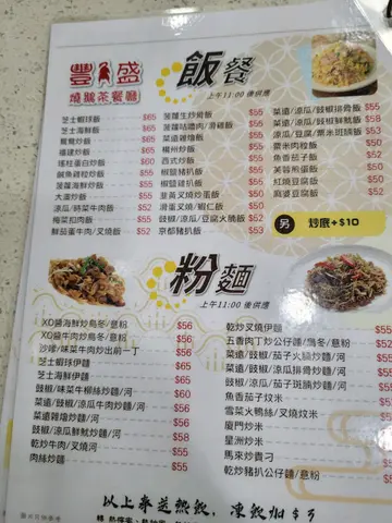 同朋友去元朗做 Face so,完後,見豐盛茶餐廳光亮,不多人,就進去點了兩個餐。梅菜蒸鯇魚很大一塊魚腩,肉嫩,鮮甜,梅菜也多,爽沒楂沒沙,和鯇魚一起蒸相當搬配。炒雜菜有西蘭花,白菜,生菜,芥蘭炒在一起,菜很嫩,炒得很爽,好味。例湯很熱,很濃。熱檸茶,茶都挺濃有三片檸檬。總的來説,菜的味道不錯,出品新鮮,服務,環境尚可以,但冷氣不够。…查看更多