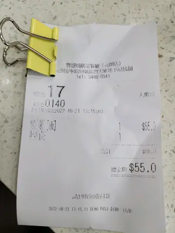 今集係孤獨的美食家,又到中午放飯係元朗搵食,未試過呢間豐盛燒鵝就諗住黎試下佢d燒鵝啦,話說之前都係元朗試過2間名店都麻麻地,呢間雖然唔係咩名店但都睇下有無驚喜啦而且聽聞d燒味係自己燒唔係交貨,令我更加有興趣試。中午時間大約1點鬆d,店內大約4 5成客左右,有卡位我一個人都可以坐,所以算坐得幾舒服,格局都係茶餐廳風格,坐位都算幾多。係咁意睇下餐牌,我都一心係食燒鵝飯,只係象徵式望下有咩食,都係一般茶仔野啦,價錢都係中規中矩。燒鵝飯其實一上到枱我都心知不妙,斬到甩皮甩骨,肥膏位去得唔乾淨,而且骨多過肉,賣相已經扣分,食落皮不脆,不熱,鵝香味淡,有肉部份叫做算鬆軟,但食骨多,飯部份都係差,半碟濕半碟較乾身,可能濕既部份係畢飯果陣係甩乾d水,呢個係手勢問題,雖然不是甚麼名店,不能有太高期望,屬中下水準,勉強食得落。例湯跟餐送例湯,正常味精湯但不夠熱,可能我遲左黎。熱奶茶跟餐送熱飲,熱奶茶算ok,茶味都夠,奶唔算落得太多,可以。整體黎講如果食燒鵝就唔會選擇呢間,呢個價錢周圍都食到更好,其他野未試過唔知,論燒鵝黎計就不了。服務黎講茶餐廳風格,叫做正常。…查看更多