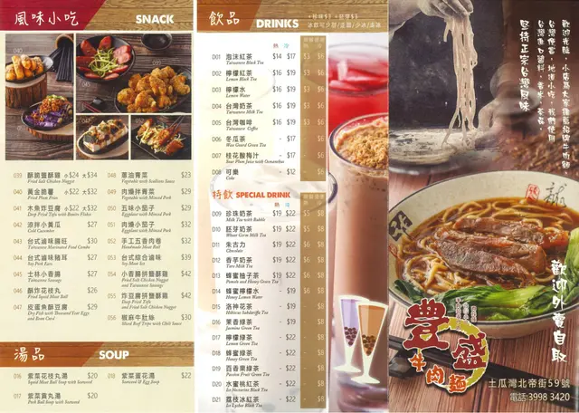 豐盛牛肉麵 (土瓜灣) 網址: https://s.openrice.com/QrbS020y3W0 地址: 香港土瓜灣北帝街59號地舖 電話: +852 39983420