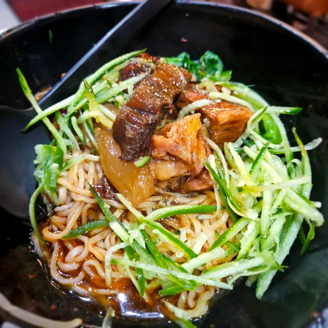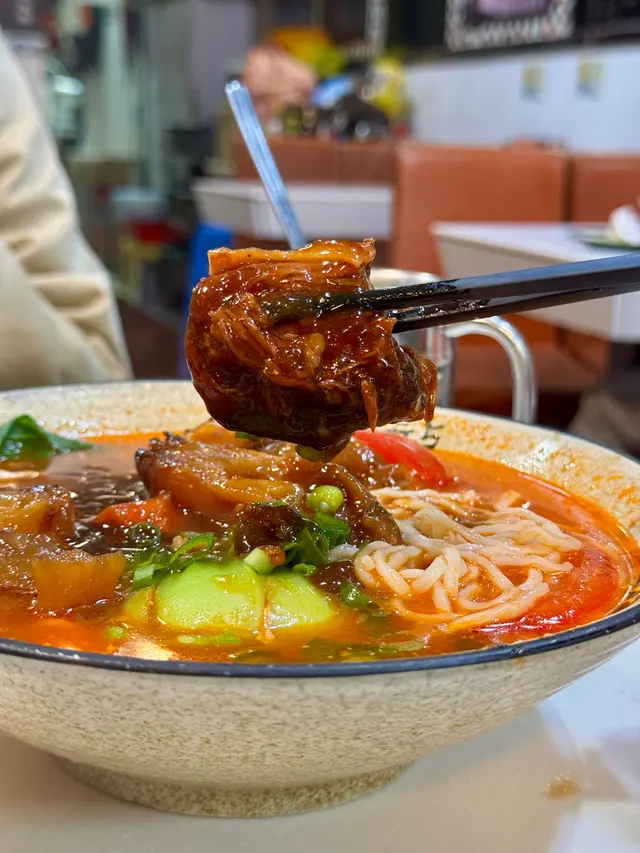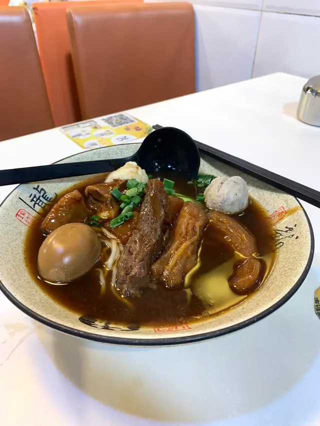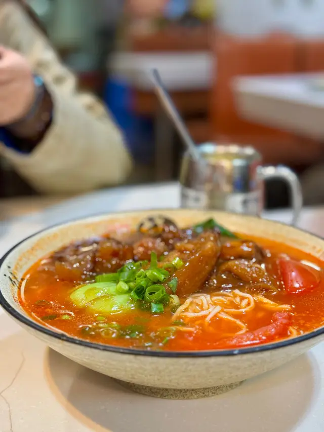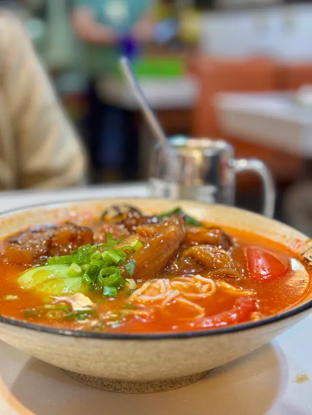 已見此店被受報導已久,今天幸得機會一試,星期日中午十二時正到達還有不少空座不用等候,店子有點幽暗但整潔度還好,只是多張雲石枱的裂紋在說明了使用歷史。本來想吃的是抵吃的午市套餐但週末不提供,所以單點了豬手肉燥飯$55和蕃茄牛肉湯麵$62,入味的豬手件數有五六件配上惹味菜脯肉燥,由於已炆出過油及經撇走所以毫無油腻感,肉質很軟糯跟上肉汁十分下飯,飯底也算大適合大男人或多人分享;鮮茄牛肉麵湯很濃甜卻欠洋葱提香,牛肉則入口即化,蕃茄新鮮同時麵質亦是很夠勁道,不過順带一提此店不提供香辛調料缺少錦上添花的可能,而且辛辣菜式也欠奉。最後要說的是在盛夏中冷氣亦夠,可惜座位空間就窄到背碰背了。…查看更多