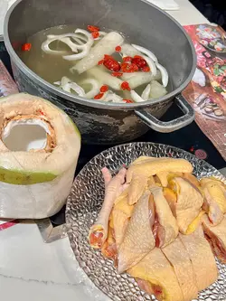 每次想食雞煲就會諗起石門呢間豐鍋雞煲🤤🤤佢既雞煲同用料都好正😋#滋潤椰子雞煲 🥥🥘❣️用左一大個椰青加落去,仲刮晒啲椰子肉一齊煲~湯夠清甜🤩fafafoodie 飲左4碗湯😗新鮮雞肉嫩滑又有雞味👍🏻仲有好多又大又粗嘅竹笙😍呢個椰子雞煲真係必試HKD198#頂級雪花肥牛 🥓❣️應該係屬於牛板腱位置😙肥瘦均勻👍🏻牛味都好出🤤比起牛小排佢係薄身少少HK118#自家炸響鈴 🫔❣️即炸響鈴上枱時仲熱辣辣,大大件好鬆化😚佢仲有芝士/紫菜響鈴都係即叫即炸架~HKD59#手工即炸魚皮 🐟❣️大大片炸魚皮係豐鍋既手工之作,好似真係冇見過第二度有,真係枱枱必點‼️好似搵熨斗燙直左咁🤪即食或浸湯都好正😊HKD54#手工四寶丸 🦑🦐🐟🍢❣️手工四寶丸有墨魚丸/蝦丸/鯪魚丸/墨汁墨魚丸,全部都好彈牙,fafafoodie唔小心跌左粒墨丸落枱時竟然有回彈😲啲丸仲好真材實料,唔係溝好多肥豬肉個啲丸🫣真係有好多墨魚粒🤩讚HKD89#白鱔片 🐟白鱔新鮮,肉質爽口彈牙,仲有啲油脂香~不過要小心細骨呀😉HKD102醬油費 $8p.p.加一服務費#豐鍋雞煲#fafafoodie_石門…查看更多