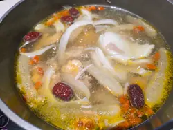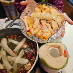 每次想食雞煲就會諗起石門呢間豐鍋雞煲🤤🤤佢既雞煲同用料都好正😋#滋潤椰子雞煲 🥥🥘❣️用左一大個椰青加落去,仲刮晒啲椰子肉一齊煲~湯夠清甜🤩fafafoodie 飲左4碗湯😗新鮮雞肉嫩滑又有雞味👍🏻仲有好多又大又粗嘅竹笙😍呢個椰子雞煲真係必試HKD198#頂級雪花肥牛 🥓❣️應該係屬於牛板腱位置😙肥瘦均勻👍🏻牛味都好出🤤比起牛小排佢係薄身少少HK118#自家炸響鈴 🫔❣️即炸響鈴上枱時仲熱辣辣,大大件好鬆化😚佢仲有芝士/紫菜響鈴都係即叫即炸架~HKD59#手工即炸魚皮 🐟❣️大大片炸魚皮係豐鍋既手工之作,好似真係冇見過第二度有,真係枱枱必點‼️好似搵熨斗燙直左咁🤪即食或浸湯都好正😊HKD54#手工四寶丸 🦑🦐🐟🍢❣️手工四寶丸有墨魚丸/蝦丸/鯪魚丸/墨汁墨魚丸,全部都好彈牙,fafafoodie唔小心跌左粒墨丸落枱時竟然有回彈😲啲丸仲好真材實料,唔係溝好多肥豬肉個啲丸🫣真係有好多墨魚粒🤩讚HKD89#白鱔片 🐟白鱔新鮮,肉質爽口彈牙,仲有啲油脂香~不過要小心細骨呀😉HKD102醬油費 $8p.p.加一服務費#豐鍋雞煲#fafafoodie_石門…查看更多