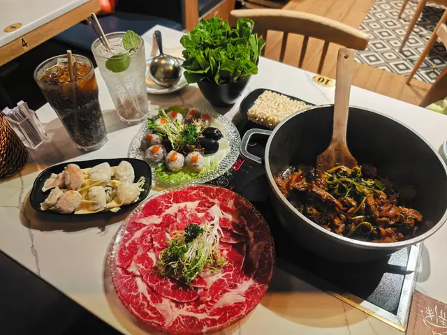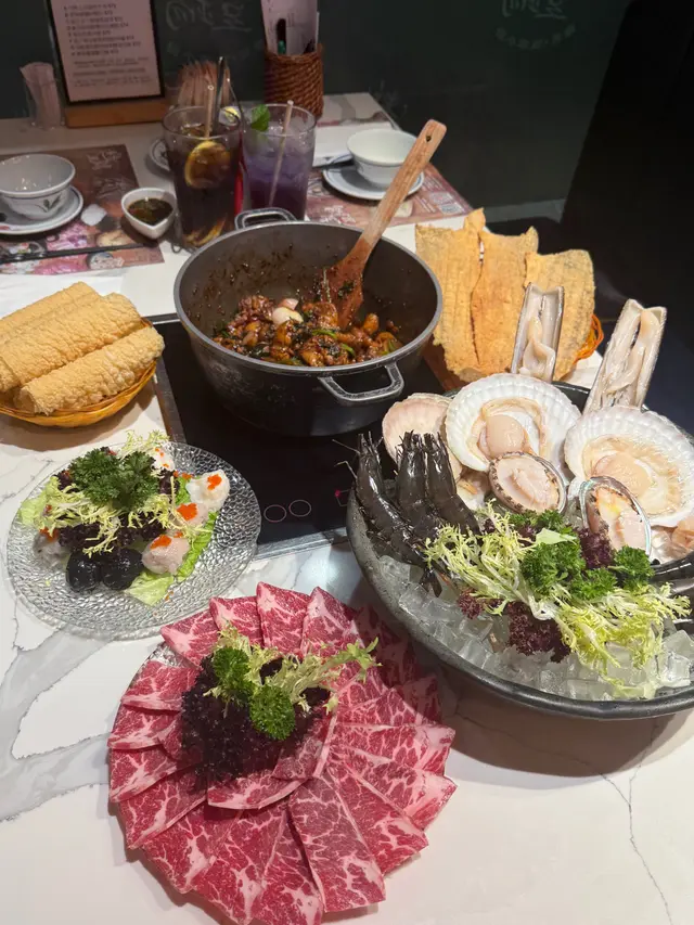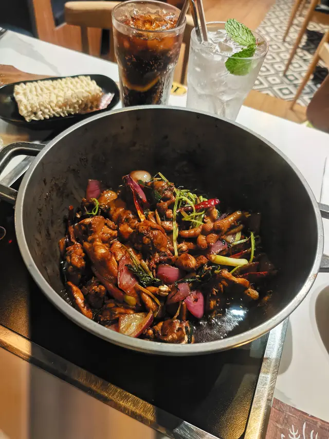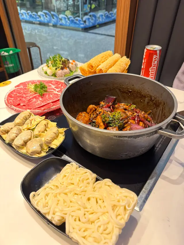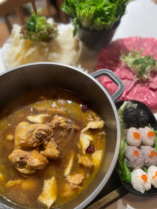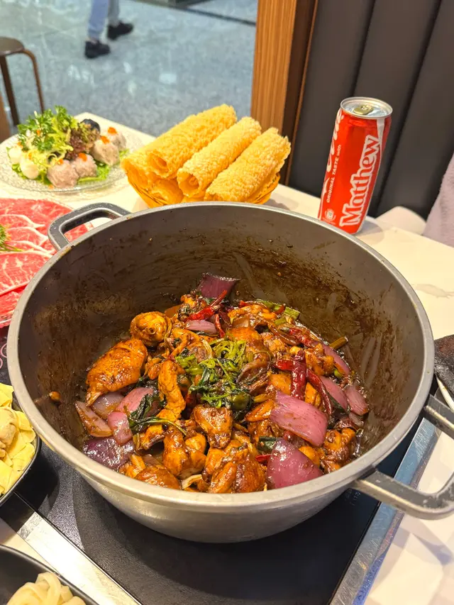 📍招牌麻辣雞煲 ~ 點了bb辣,辣度剛好適合我,雞肉鮮嫩,麻香入味。📍十優狀丸 ~ 有黑松露墨魚丸、蝦丸、墨魚丸、黑墨丸和鯪魚丸,五款口味,每款都彈牙新鮮。📍餃餃陣 ~ 鮮蝦雲吞、魚皮餃、韮菜餃和麻辣雲吞,四款口味當中我最喜歡鮮蝦雲吞,皮薄餡靚,鮮味多汁。📍頂級雪花肥牛 ~ 脂肪比例平均,肉質較嫩,厚厚的一塊,牛味香濃。📍出前一丁 ~ 打邊爐最喜歡的就是出前一丁,吸盡湯汁的味道,非常好吃。📍油麥菜 ~ 清甜爽脆的油麥菜,打邊爐之選。📍咸檸七 ~ 微微的咸酸,清涼爽口。📍龍鳳檸樂 ~ 淡淡的檸檬香,清爽解渴。整體價錢合理,雞煲惹味,火鍋配料款式多又新鮮。