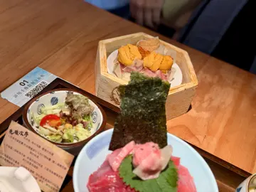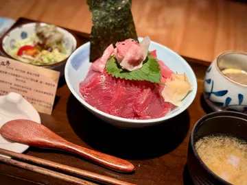 居然有嘢連我這個銅鑼灣地膽都吾知就係呢間藏於銅鑼灣渣甸街入的藍鰭吞拿魚專門店。豐鮪既然知道就要去試吓打開門一目了然, 客人自助落單、倒茶所以店員都好少行出黎 。我哋系晚上第一枱客人, 坐位任坐。第一時間見到有推廣優惠, 點一份肉餅飯, 第二份半價, 真心抵!定食包括了蟹膏燉蛋, 沙律, 麵豉。先吃燉蛋打底, 給胃內添點暖氣蟹膏冇腥燉蛋夠滑pass 帶子肉餅飯新鮮做手切藍鰭吞拿魚魚蓉+蔥碎+北海道帶子+日本珍珠吃前先加上醬油厚切帶子新鮮圓潤與咸鮮蟹籽是絕配再深深地夾起一大注藍鰭吞拿魚魚蓉配口感黏連珍珠米,吞拿魚蓉棉細口感, 中融鮮度,也喜歡加上葱花的令香味更提升。鹹蛋肉餅飯新鮮做手切藍鰭吞拿魚魚蓉+蔥碎+日本蛋黃豉油漬+日本珍珠米第一次見藍鰭吞拿魚配咸蛋,相當有創意筷子一篤下咸蛋黃爆漿滲入珍珠米內, 再加少許醬油撈埋藍鰭吞拿魚魚蓉送入口, 創意之餘味道也不错。埋單兩個人只須$227冇加一依個價錢可以食到藍鰭吞拿魚系邊度搵呀!…查看更多