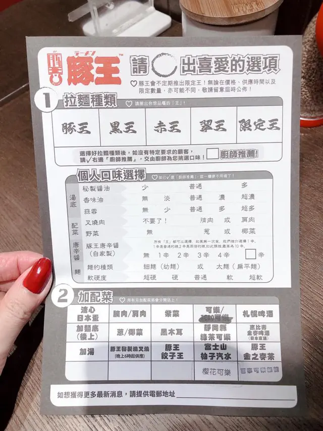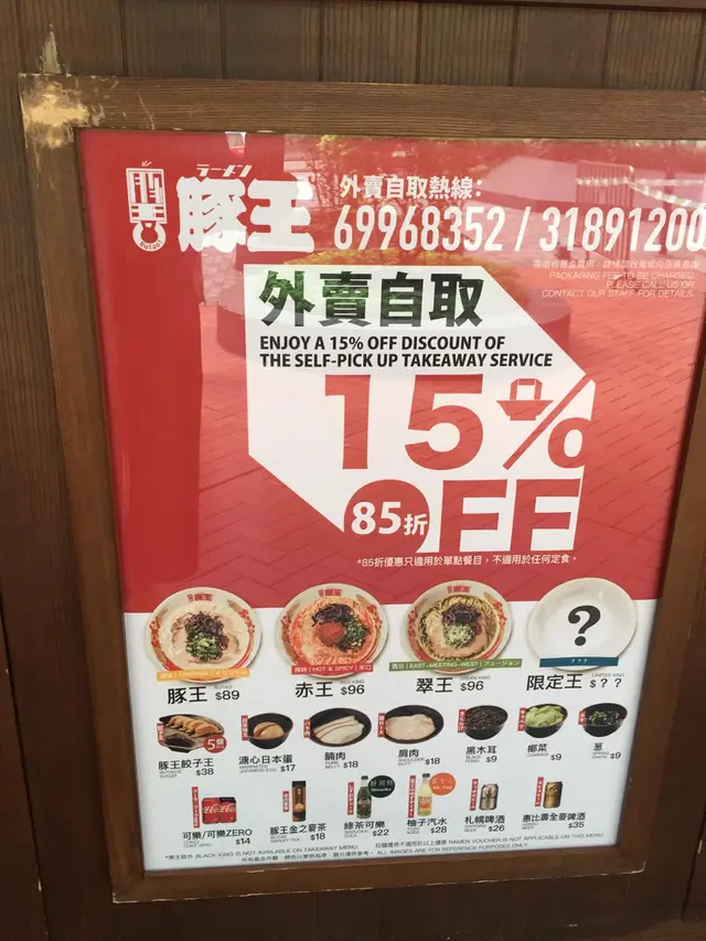 Lunch 想食拉麵,好想食一蘭,無一蘭就食豚王, 反正好耐冇食過,一打開個menu, 有隻好細既昆蟲,我即刻冚番埋本Menu, 叫佢收左佢。佢每日有個是日限定的拉麵,我嗰日係辛豚拉麵,但想食得清清地,都係叫左個豚王拉麵, 揀咗面底要林啲,揀左菜無揀蔥,因為蔥同菜只可以二揀一, 個麵份量麵好夠, 有2塊叉燒,同埋麵多菜, 佢有得比你加芽菜, 啲芽菜好惹味,我哋麵有不停加黎食, 但個麵底揀左林身啲, 佢麵依然偏硬, 食拉麵要飲冰水,但佢個水唔夠凍,就好似普通室溫水咁,呢點就做得唔似日本。 …查看更多