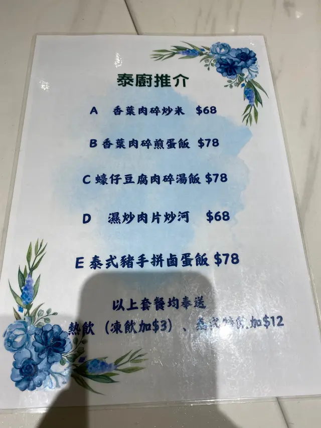 正常發揮的茶餐廳泰菜 unaf等級42024-03-03188 瀏覽 關注 禮拜日lunch想食泰國嘢,偶然記得最近新開的泰國餐廳,所以就黎試下!入面的裝修配套都好似茶餐廳,水餐具都係自助,所以冇加一嫁!lunch套餐由$45到$68,配有餐飲,正常茶餐廳價錢!🌟泰式香辣肉碎煎蛋飯($65)貌相好令仔,蛋係流心,肉碎香辣,撈飯一流!🌟馬拉盞炒河(雞肉)($58)係好惹味,但有d過咸🌟炸雞翼($22)加$22就可以加配唔同小食,雞翼有啲甜味,應該加左蜜糖炸正常發揮!🌟餐飲(凍奶茶+熱奶茶)正正常常茶餐廳!…查看更多+ 6以上食評乃用戶個人意見 , 並不代表OpenRice之觀點。讚好分享正常發揮的茶餐廳泰菜 象屋 https://s.openrice.com/QrbT095XH00檢舉 張貼 評分4味道4環境4服務4衛生4抵食用餐途徑堂食