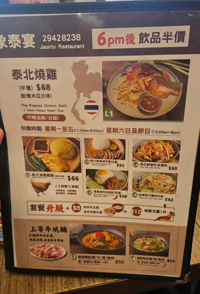 今日去咗屯門整車,反正都要等成個鐘頭多,週圍行睇下搵唔搵食hea下時間,行到附近見到呢間食泰菜,門口個餐牌幾吸引,價錢仲好經濟,見到入面有位,就試試啦!下午茶由28蚊至44蚊不等,仲包飲品,又可以追加小食泰式雞柳炒金邊粉$42上枱見份量好多,大大碟真係唔似下午茶份量,配料有豆卜,芽菜,蔥,蛋和雞柳,不過河粉炒得唔夠乾身,雞柳亦唔多,味道一般(本身想追加個月亮蝦餅,不過賣曬)餐飲熱咖啡冇乜特別總結位於屯門嘅平民泰菜,價錢合理,服務好,上菜快,雖然算得上係天花板級數,呢個價錢嚟講,都冇乜嘢好投訴…查看更多