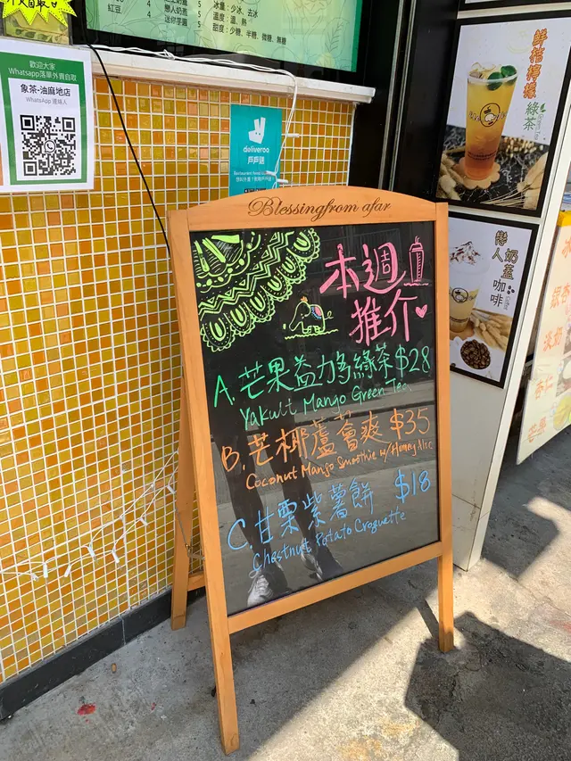 今日同事last day作為公司一分子實在對他依依不捨所以中午的時候去公司附近的飲品店買了幾杯飲品大家一起分享象茶是新開的台式飲品店就在油麻地地鐵站附近位置十分方便飲品種類亦很多而且價錢十分便宜實惠比其他台式飲品店來得便宜這次選了幾款飲品🔴芒果益力多綠茶$28益力多味非常正加了益力多感覺比較健康芒果味變得更清新🟠芒椰蘆薈爽$35超多蘆薈果然喝到爽而且芒果和椰汁用攪拌機打均變成果蓉很fresh而且蘆薈粒增加口感🟡台灣水果茶$30有很豐富的百香果粒雖然不像出面飲品般有很多水果但是味道並不影響口感水果茶甜度剛好不會太死甜味道有點微酸酸酸甜甜的很適合夏天🟢芝士奶蓋白桃烏龍$26芝士奶蓋很多無論攪均飲還是分開飲也很特別奶蓋很濃郁但飲多不會太膩這杯用烏龍茶底所以茶味不會太濃反而更突出茶的清香加上飲落去有淡淡的白桃味所以很清新總結:因為性價比高所以下次都會再光顧📍 象茶 (油麻地)油麻地文明里11-13號地下2號舖查看更多