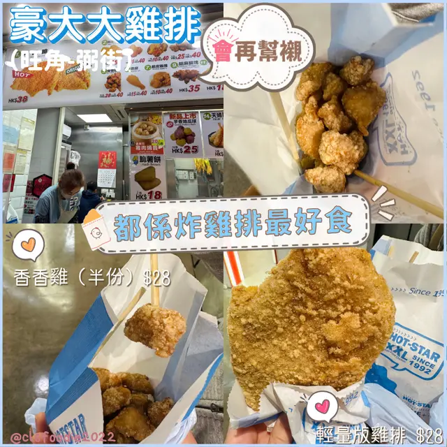 🍗豪大大雞排📍旺角弼街67號地下B舖(旺角火車站moko個邊天橋過去)👉🏻👉🏻menu圖1️⃣ 香香雞 (半份) $28外皮炸得酥脆,幾香,但雞肉有少少鞋圖2️⃣輕量版雞排 $28都係招牌好食,係豪大大獨有味道,有少少似香酥雞但又唔係,好香,夠酥脆,雞肉嫩滑😋(評分:5杯☕️最高分) 食物:☕️☕️☕️☕️環境:☕️☕️☕☕️ CP值:☕️☕️☕️☕️服務:☕️☕️☕️️️️️️️️️️️️淨係收現金、支付寶&微信✨會再幫襯? 會,雞排好食😋…查看更多