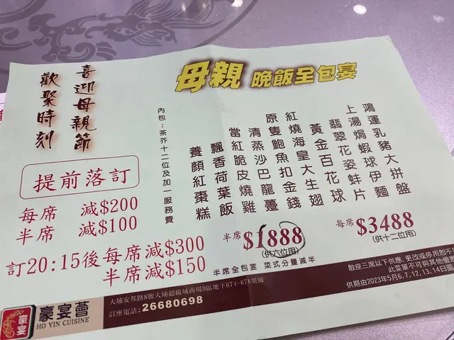 適逢母親節,又啱啱喺大埔睇完戲,就去咗戲院附近嘅呢一間中式酒樓度食飯。嗰日大約7:30左右到酒樓食飯,都唔使特別等位,就已經可以入去坐低。當日有母親節套餐,但係我哋冇揀到套餐嚟嗌,我哋一行七個就散叫咗唔同嘅小菜嚟慶祝母親節。小菜都幾抵食,以母親節嚟講,十個餸$1700多啲可以落樓都算係咁🫶🏿其中一個蒜蓉炒生菜,但係佢真係想得蒜蓉炒通菜。經理都好客氣咁同我哋講唔好意思,然後即刻換返個生菜比我哋。👍🏿人流都算多,所以整體嘅餸菜都好新鮮👍🏿查看更多