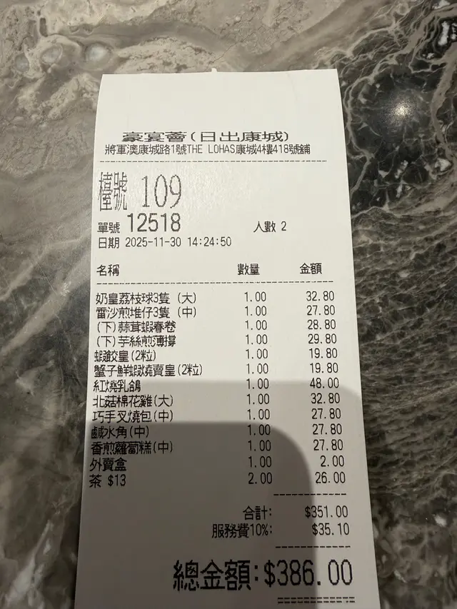 豪宴薈 (將軍澳) 網址: https://s.openrice.com/QrbS0msWF00 地址: 香港將軍澳康城路1號The LOHAS 4樓418號舖 電話: +852 26388929
