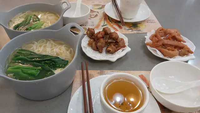 蜜餞豬頸肉湯米線和椒鹽小排骨湯米線、凍香芒布丁、鮮竹牛肉球