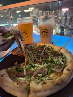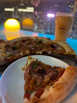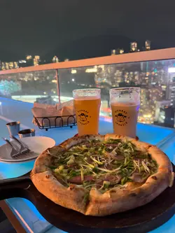 一次偶然的机会的得知铜锣湾有一家高空小酒馆,除了喝酒之外还能有一些西餐可选,趁着工作日下班,和友人过来小叙一下。餐厅位于30层,真的很高视野很开阔,第一次以这样的视角看铜锣湾,吹着微风,非常惬意。平时很难得有时间能欣赏港岛的夜景。主包推荐✅北京烤鸭披萨🍕完美的中西结合,现烤出来的薄饼皮酥脆又有韧劲,烤鸭专配的甜面酱意外地好吃!葱丝➕黄瓜碎➕芝士➕新鲜的鸭肉,份量充足。✅肉酱意面🍝非常传统的西餐做法,中规中矩,在高空上吃别有风味。✅手工啤酒组合(6小杯)选择了6款啤酒,试试味道。选了秀才,土豪,花魁三种低度的,还有葡萄,荔枝,黄皮三种果味的,真的各有特点,都很好喝。