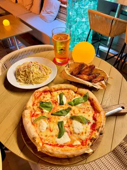 放假就梗係想飲下野放鬆下💆🏻♀️平時都有經過開ZING依幢大廈,但冇諗過佢地嘅30樓有間酒吧餐廳,可以離遠望到維港靚景🌃之餘,仲俯視到跑馬地馬場添😆依家天氣啱啱好少少微風,最適合佢地嘅露天位置,飲下野🍺食下野望住靚景好chill水牛城雞翼👉🏻一啖咬落去仲保留好多肉汁,點埋特調嘅辣椒醬,勁辣得黎大有少少酸味,小食必叫👍🏻瑪格麗特薄餅🍕餅皮酥脆得來但有少少韌勁,酸甜嘅蕃茄加埋芝士嘅奶香😆係一百分嘅配搭💯卡邦尼意粉🍝每條意粉都掛滿超濃郁嘅🧀奶香芝士味,仲有少少煙肉嘅油脂香,令到成個意粉昇華晒❤️餐廳有多達十幾款不同口味嘅精釀啤酒🍻,亦都獲得過唔少嘅大獎,仲有葡萄酒雞尾酒等等多款選擇,每次黎都會有驚喜🥰今次就試左土豪啤酒,麥香味好濃郁,口感飲落清爽順水滑,帶少少甜味,貓員外酒花氣泡水🥂但係有好獨特嘅酒花香氣偏清新✨