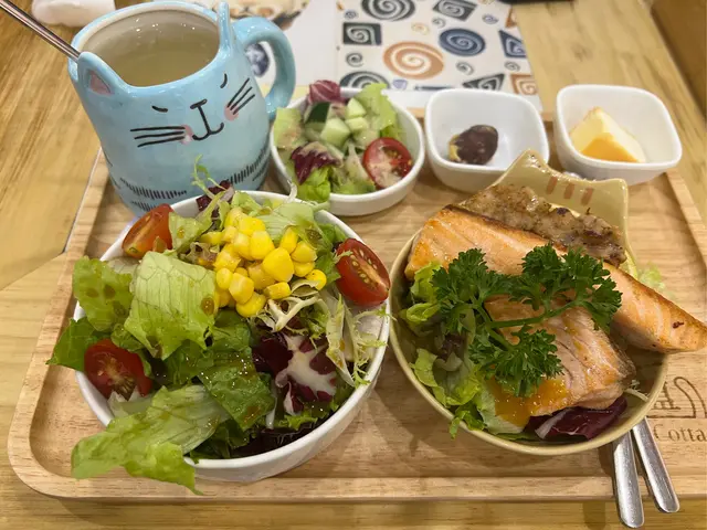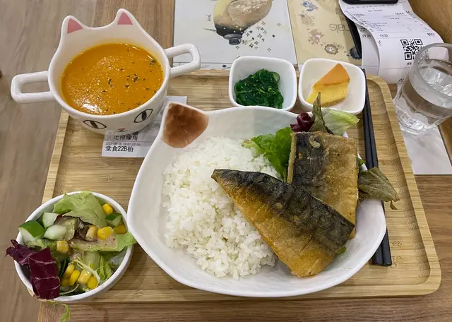 叫左2份定食包前菜/沙津/主菜/甜品同飲品香煎挪威三文魚飯三文魚最忌食到腥味又怕又乾又柴香煎三文魚皮爽脆肉質嫩滑保持到柔軟度加上芒果汁伴食開胃惹味 三文魚鰭野菜魚湯葛絲 三文魚鰭夠肥美 魚油香溢 葛絲似薯粉 食落質感煙韌 湯底清香鮮甜 配上大量蔬菜 好健康「貓盧」以為係貓cafe,非也但小店有好多貓貓週邊牆身有大幅貓貓畫可愛貓器皿裝載食物 就算無真貓貓愛貓都會食得到開心#貓廬 📍紅磡鶴園街8號煥然㦤居1樓101號舖#dcb食在香港 #dcb吃喝玩樂 #dcb紅磡 #食在香港 #香港美食 #美食 #紅磡 #三文魚 #紅磡美食 #日式…查看更多