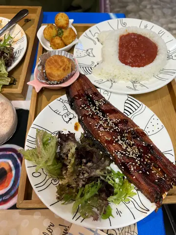 第1次光顧,本人在OpenRice 看見預約。先說菜後說貓。一個餐是有一定的價錢,不過好處是:店家不設時限(營業時間內),重覆:不設時限!而且定食是非常豐富,我order了茄汁鰻魚定食,包括了南瓜湯、飲品和甜品,價錢來說是值得的!重點說貓,這裡的店主比起一般貓cafe不同的地方,是他主動向我們介紹貓貓的故事。而這裡基乎都是收留和救助流浪貓,看到店主和知道其夫人親力親為照顧和幫助浪貓,雖然有受貓傷也堅定繼續,必須給予肯定。而在這裡學到貓和人類一樣都應被平等看待,這是一個不錯的教育,尤其適合教導小朋友做個愛動物的人。(如果有心支持這裡幫助浪浪,可以聯絡店主去溝通和捐合適的貓糧)另外,這裡的布置很warm,坐梳化很舒服。非常好!不劇透那麼多了,願大家有空來發掘和支持。…查看更多