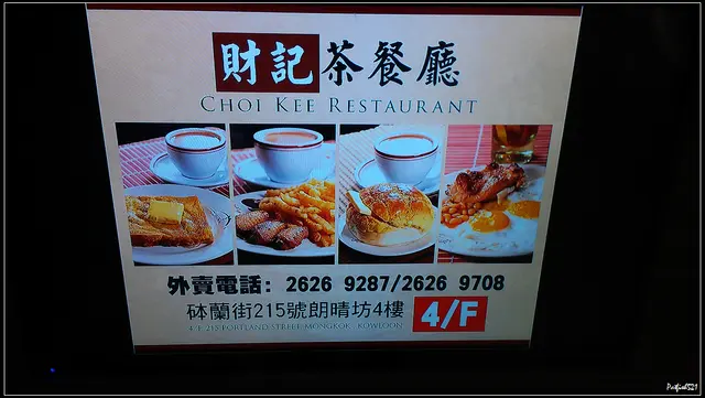 財記茶餐廳 (旺角) 網址: https://s.openrice.com/QrbS0ojK100 地址: 香港旺角砵蘭街215號朗晴坊4樓 電話: +852 2626 9287