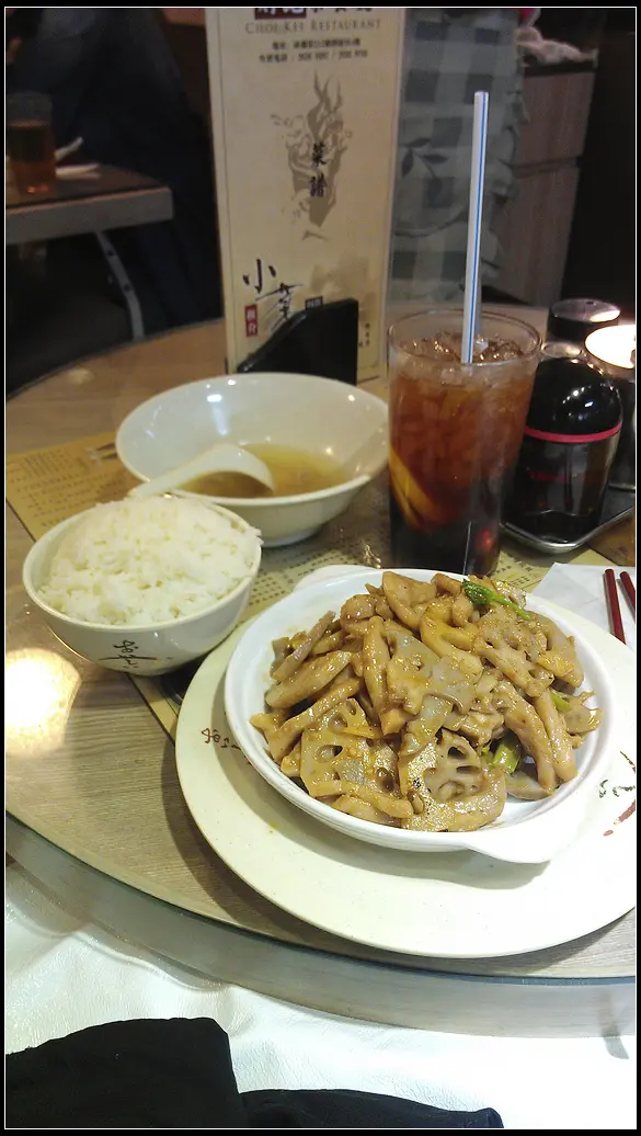 舒服的茶餐廳 patfish521等級42015-03-02901 瀏覽 關注 旺角找吃都很難,特別是一個人,所以來了這間茶餐廳,坐得較為舒服。要了個蓮藕炒豬頸肉餐,配凍檸茶。來了個中式餐湯,沒什麼味道可評論。蓮藕炒豬頸肉, 蓮藕爽口,豬頸肉也不錯,這份量對一個人吃已很足夠了。…查看更多以上食評乃用戶個人意見 , 並不代表OpenRice之觀點。1分享舒服的茶餐廳 財記茶餐廳 https://s.openrice.com/QrbT02HKb00檢舉 張貼 評分3味道3環境2服務3衛生2抵食用餐途徑堂食人均消費$47 (晚餐)