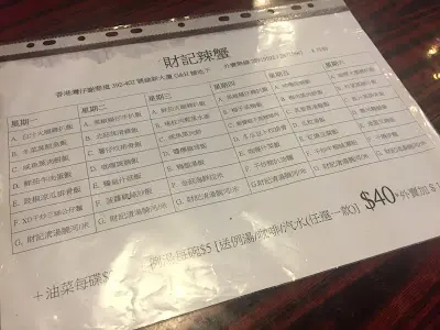 午餐可以接受 @ 財記辣蟹 Choi Kee Chili Crab VCY等級42016-08-052K 瀏覽 關注 隨同事到財記辣蟹用膳,店內環境一般,午市提供廉價午市套餐,四十元一客連飲品。這碟咕嚕斑腩飯,賣相一般,甜酸汁味道調較合預期,並帶微微辣感。斑腩炸魚應剛炸起不久,口感仍見酥脆,龍脷魚肉肉質相對鬆散薄身,亦屬預期水準。…查看更多以上食評乃用戶個人意見 , 並不代表OpenRice之觀點。讚好分享午餐可以接受 @ 財記辣蟹 Choi Kee Chili Crab 財記辣蟹 https://s.openrice.com/QrbT0KnSe00檢舉 samurai 急涷魚柳, 質素不可能太好, 咁既價錢, 可以收貨了.2016-08-06 回覆 張貼 評分3味道2環境3服務3衛生3抵食用餐日期2016-08-05用餐途徑堂食人均消費$40 (午餐)