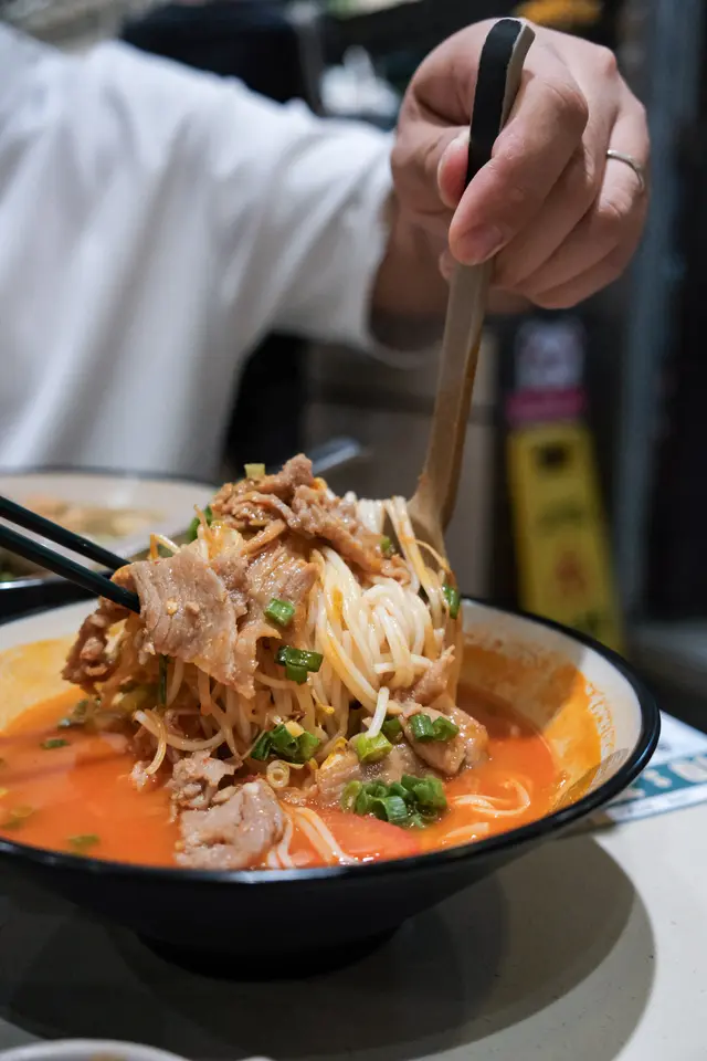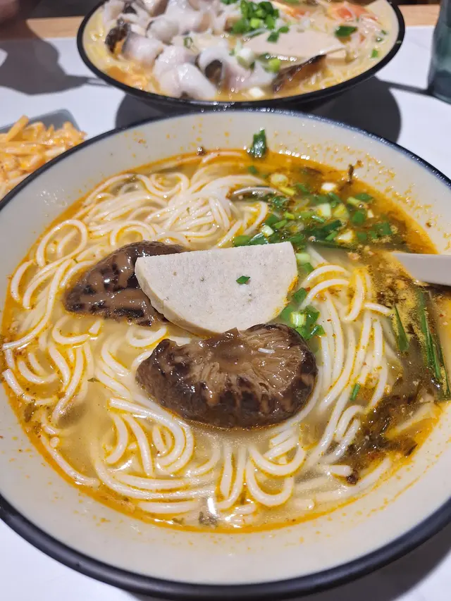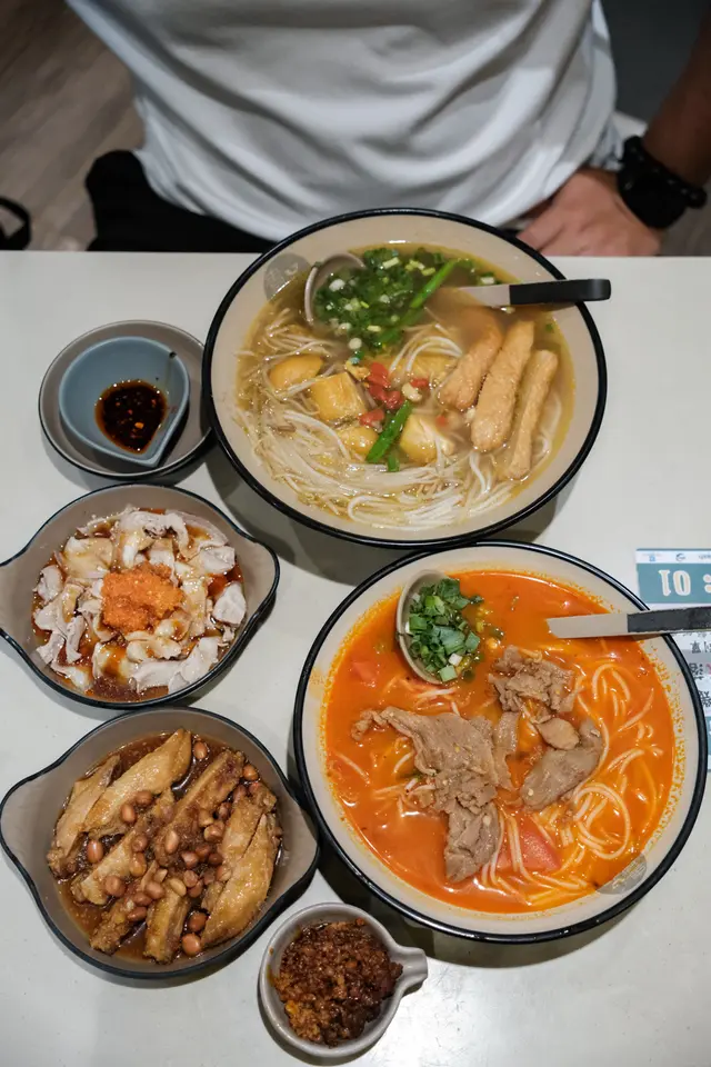 最近試咗北角一間米線小店,今次試咗兩款招牌米線,整體有驚喜,同大家分享下~🍴 特濃新鮮蕃茄湯米線(雞肉絲+生菜+蘿蔔)$65 ⭐️⭐️⭐️⭐️湯底真係夠濃郁,飲得出用新鮮蕃茄熬製,酸甜自然,帶微微辣勁,好開胃!雞肉絲撕得夠幼,吸晒湯汁好入味;蘿蔔煮到軟淋,清甜無渣;生菜爽脆,加埋一齊食口感豐富。$65 呢個價錢算合理,蕃茄控可以一試!🍴 元祖金酸魚片濃湯米線(炸魚皮)$82 ⭐️⭐️⭐️⭐️金酸湯同一般酸菜魚湯唔同,酸得嚟溫和,帶少少香料香,唔會太刺激。魚片份量足,嫩滑無骨,追加嘅炸魚皮浸湯後半脆半軟,吸盡湯汁好過癮!如果鍾意酸辣口味,呢款值得一試~🍴 巴蜀狂惹雞翼 $29 ⭐️⭐️⭐️雞翼即炸上枱,外皮幾脆,蜜糖同黑椒嘅配搭算惹味,不過肉質未算好Juicy,可以再改善。如果鍾意香口小食,都可以試下,但未算必點。📝 總結* 蕃茄湯米線係必試之選,湯底真材實料;* 金酸魚片湯適合鍾意酸辣但唔想太重口味嘅人;* 雞翼中規中矩,可以一試但未算驚艷。
