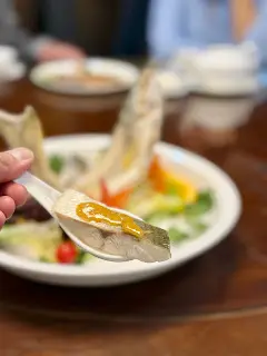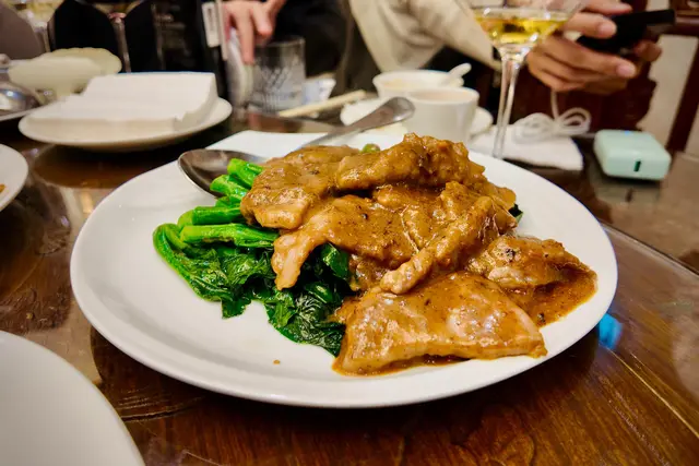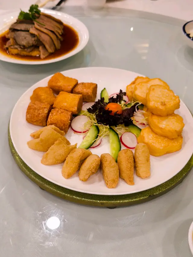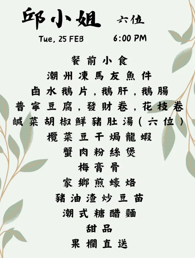 近期的另一個慶生飯局,其中一位壽星女提議去「賀賀澤」,即潮州話「好好食」的意思,顧名思義是吃潮州菜的。「賀賀澤」採半私房菜的形式,訂座後收到餐廳傳來的菜單。初湯浸花甲的花甲𤆥熟了的,鮮甜無沙。鹵水鵝片拼鵝肝熱辣辣冒着煙上桌,鵝片不會切得太薄,口感和肉質都不錯,鵝肝甘香入味,不會太鹹。普寧豆腐、蟹棗拼花枝卷炸得不油膩。普寧豆腐口感獨特,蘸韭菜鹽水來吃,味道更豐富。窩夫最喜歡花枝卷,非常彈牙。位上的川貝海底椰燉烏雞,喝時要小心燙口,因為真的很熱。窩夫最期待的招牌膏蟹蒸肉餅來了,跟一碗白飯,餐廳很細心呢。肉餅吸收了膏蟹的精華,拌飯一流。膏蟹很新鮮,有很多膏,味道甘香,蟹殼扑開了,進食很方便。潮州菜不少得家鄉煎蠔烙,煎得夠乾身,不油膩,蠔仔不腥,充滿蛋香。手打魚丸春菜鍋除了魚丸和春菜,還有魚片和蘿蔔,魚丸魚片水準不俗,通常吃潮州菜才會吃到春菜,味道有點像芥菜。精選糖水是綠豆爽,味道不錯,跟燉湯一樣的熱。果欄直送的西瓜皮薄多汁。…查看更多