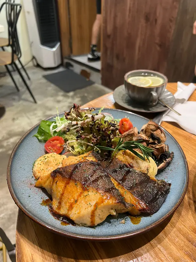 今日朋友生日,約佢來到太子呢間cafe。雖然餐廳唔大,但裝修十分寧靜舒服,同街外熱鬧既氣氛成對別。點左一份2人餐加一個意粉。雞胸沙津(⭐️⭐️⭐️⭐️⭐️)餐廳既沙津好靚,未食已經覺得好fresh。沙津菜唔係馬虎,用上多種新鮮品種,唔會hea你。另外配上濃度剛好既沙津汁,好開胃同清新。另外不得不提雞胸,慢煮之後令雞胸保持嫩滑,一d乾柴感都冇!精選餐湯(⭐️⭐️⭐️⭐️⭐️)超級喜歡餐廳令次既蔬菜湯!佢唔係一般個種又杰又咸又無料既羅宋湯,反而好中二佢個種清湯底又蔬菜滿滿既感覺,每一啖都有好舒服既感覺,而且真係感覺到蕃茄、西芹等等蔬菜原味道,健康up!西京燒比目魚(⭐️⭐️⭐️⭐️⭐️)餐廳煮既比目魚我敢講係酒店級數,首先魚肉十分嫩滑,但唔係完全脂質,而係魚油魚肉比例均勻,食到魚肉又每啖滑溜。而且火喉剛剛好,唔會太實又唔會未熟。另外調味好出色,西京燒煮得好惹味,味噌,酒香交替,呢個價錢就食到,好幸福呀!青醬帶子螺絲粉(⭐️⭐️⭐️⭐️⭐️)呢碟螺絲粉擺盤十分精美!帶子全部都煎得金帶微焦,每啖都肉質仲係嫩滑,仍然享受到刺身級肉質。另外青醬調味都好出色,絕對唔覺得肥膩,反而羅勒同欖油香味滿滿,加埋小小蛋黃醬,好食到停唔到。咖啡燒汁烤豬仔髀(⭐️⭐️⭐️⭐️⭐️)第一次見到食物拌埋咖啡粉食,唔好以為好怪,食落好夾,咖啡既香氣同微甘完美地去左豬肉本身既小小膻味,特別喜歡豬仔髀好嫩滑,一d都唔會鞋口,配搭埋沙津菜同香烤蘑菇,一d都無罪惡感!Apple crumble (⭐️⭐️⭐️⭐️⭐️)餐廳既甜品處理一d都唔馬虎,好中二佢個crumble上面有杏仁片,令到甜品既口感層次豐富左。另外,蘋果同肉桂都好香濃,為今餐錦上添花。熱檸檬柚子蜜(⭐️⭐️⭐️⭐️⭐️)最後飲埋熱檸檬柚子蜜覺得整餐好完滿,而且係秋意漸濃既天氣下飲杯柚子蜜,特別覺得滋潤舒服!~~~~~~~賞島咖啡屋 太子花園街233-235號偉雄大廈地下A號舖推介菜式:雞胸沙津、西京燒比目魚、青醬帶子螺絲粉👍出色味道👍地點方便👍環境舒適 …查看更多