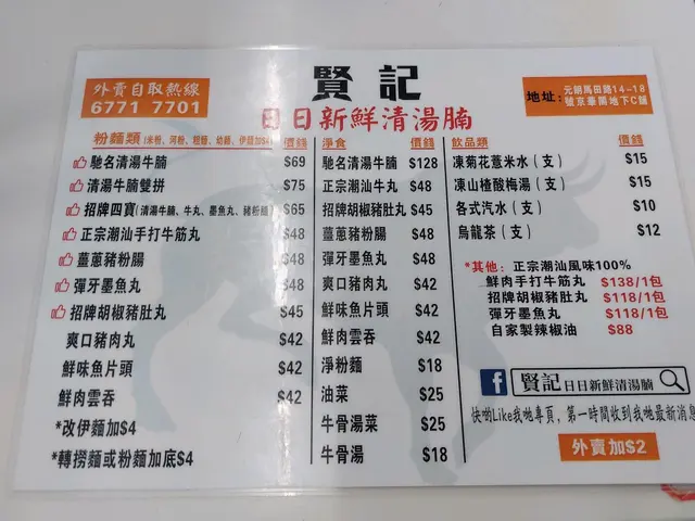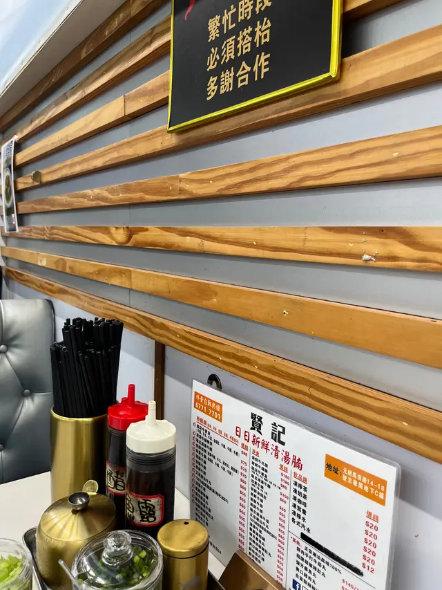 今日途經元朗,就去探訪其中一間出名食牛腩嘅名店,賢記牛腩。可能今日落雨,冇乜人等位,今日行過終於一試。 今日中午大約12:30 ,無需等位,可以直入。店內大約八成人。坐低叫咗佢招牌嘅爽腩河,價錢$70。 店內10分光猛,有卡位。 除咗牛腩之外,佢仲有牛雜牛筋之類,佢話最新係牛尾,不過今日未有嘗試。飲品方面有汽水凍檸茶之類。如果只叫牛腩,價錢188。大約等咗5分鐘,牛河送到。有一舊蘿蔔,牛腩大約七八嚿。 少少偏肥。牛肉算濃,10分淋身,冇牙都食得到。 味道中規中矩,如果路過,不用等位,可以一試。好味指數: 80分環境指數: 75分抵食指數: 75分服務指數: 75分…查看更多
