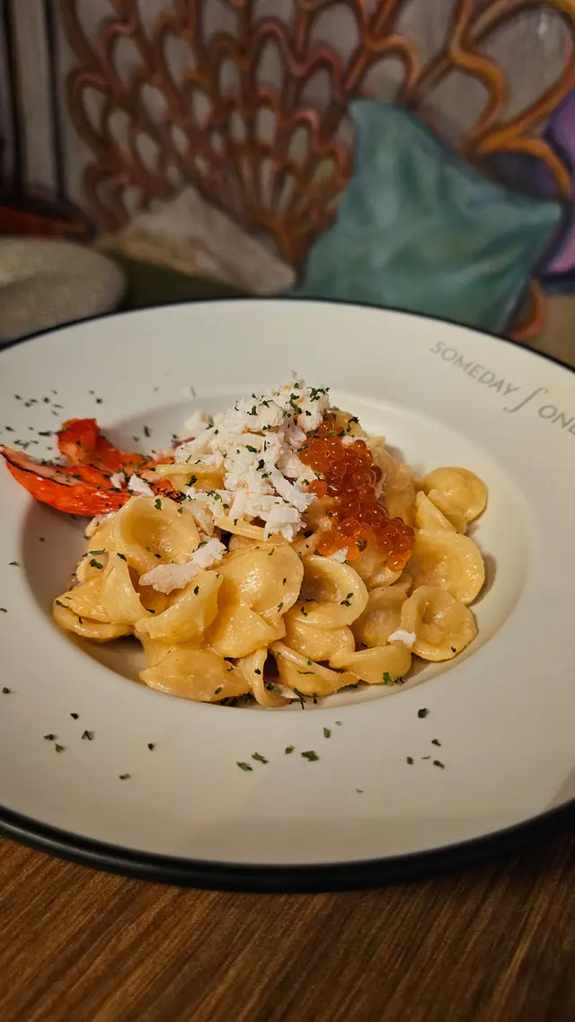 朋友生日去咗間好有格調嘅餐廳,好啱情侶或者三五知己嚟chill下!首先叫咗個 明太子岩燒蟹棒貓耳朵,三文魚子鋪面,貓耳朵麵煮得啱啱好,幾入味,咬落去都有嚼勁,明太子醬濃郁得嚟又唔會太鹹,三文魚子嘅爆漿口感搭配貓耳朵都幾夾。