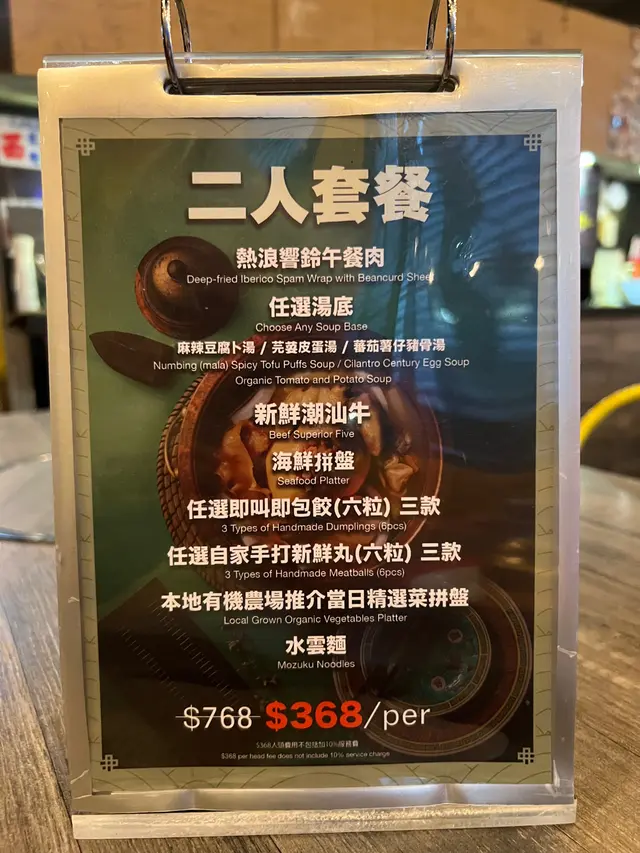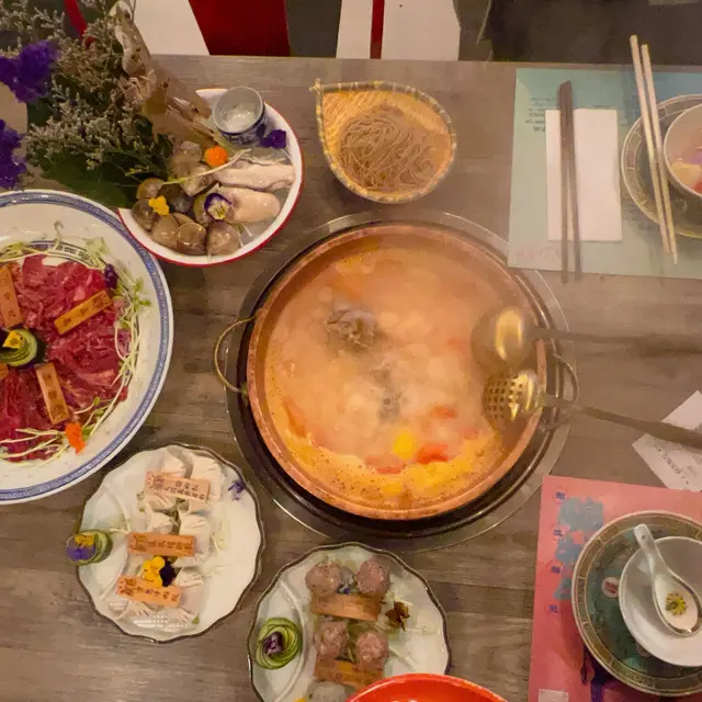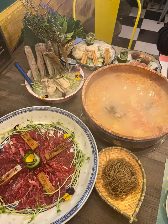 我約姊妹來到灣仔,霓虹燈設計,充滿懷舊香港風格的「起鍋」主打火煱,音樂是80年代香港粵語流行歌,食物的款式有特色,非常美味,佳餚讓一眾嘴饞的食客品嚐。大部分食材均為本地原產,十分新鮮,我們選了「起鍋二人套餐」,湯底三選一,其中丸類同手打丸可自選各三款。熱浪響鈴午餐肉先來個小食,上乘黑毛豬肉午餐肉,趁熱食好脆。蕃茄薯仔豬骨湯湯底選了蕃茄薯仔豬骨湯,真材實料,新鮮豬骨、有機蕃茄等淆成,好飲了幾碗湯。新鮮潮汕牛潮汕牯牛非常新鮮,灼五六秒便可以食,牛味濃,味道不俗。海鮮拼盤海鮮拼盤有生蠔、蝦、紐西蘭聖子,生蠔肥美,新鮮美味。餃子餃子全部人即叫即包手,皮薄餡靚,最愛香茅蝦膠扎肉餃,蝦味濃。自家製手打新鮮丸師傅每日一早開始自家製,最愛九層塔蝦丸彈牙爽口,新鮮好食。本地時令菜拼盤嚴選來自大埔有機農場新鮮蔬菜,十分細心。水雲面烚一分鐘左右就食得,幼滑彈牙。起鍋(灣仔)地址:灣仔駱克道37-39號得利樓1樓…查看更多
