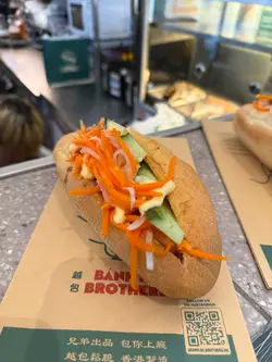 越包兄弟✊🏽@banh.mi.brothers.hkmenu夠晒簡單直接,主打就係越南法包Bánh Mì🥖 所有法包基本配搭都一樣🥄 夾滿醃紅白蘿蔔絲🥕 青瓜🥒 芫荽、豬肝醬(靈魂配料✨) 同mayonnaise 。分別只係肉餡料🍖 口味上有統一感但又各有特色😌燒肉 Crispy Pork🥓照燒雞 Grilled Chicken🍗乜都有 Combination🈵「乜都有」真係最抵食之選,一包就試勻三款主打,燒肉、叉燒同雞扒,唔洗糾結揀邊款,完全係食肉控嘅首選😇 而鴨胸相對特別少見脆皮燒肉係重點🤓 烘到金黃帶少少焦黑。一咬即碎💢 瘦肉同肥肉分佈平均,入口唔膩,油脂溶喺口腔入面,夠晒香❤️🔥叉燒入口即感受到嗰陣熟悉嘅蜜糖香,肉質唔會乾,仲保留到啲肉汁🍯 叉燒偏蜜糖香,而照燒雞經過醃製,有種日式醬油香🍘一齊咬落去有鹹、有甜、有辣、有酸,每啖都唔悶🥸 下次會繼續忠於combo,或者淨燒肉嗰款!法包本身都夠長夠厚📏 再加咁多餡料,食到一半,啲配料開始癲咗咁跌出嚟🫠 食得越亂越狼狽,越代表餡料夠多同誠意十足😈 但如果唔想跌得咁癲,可以考慮搵老闆幫手切半,方便啲食🔪越南奶啡☕️開業大酬賓買包送啡🎁即係滴漏咖啡加入煉奶,甜中帶苦,濃郁順口🥛小店主力做外賣,不過都有幾個企位可以堂食🧍🏻…查看更多