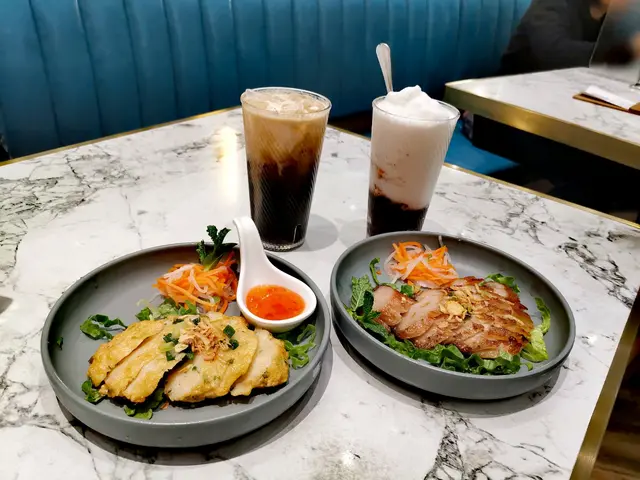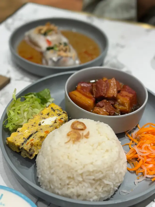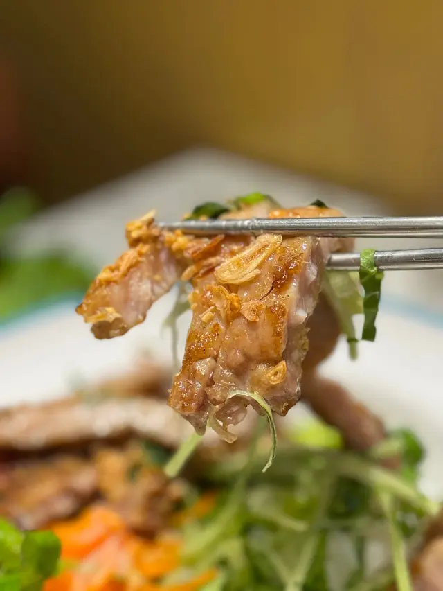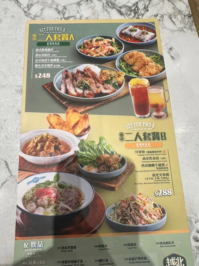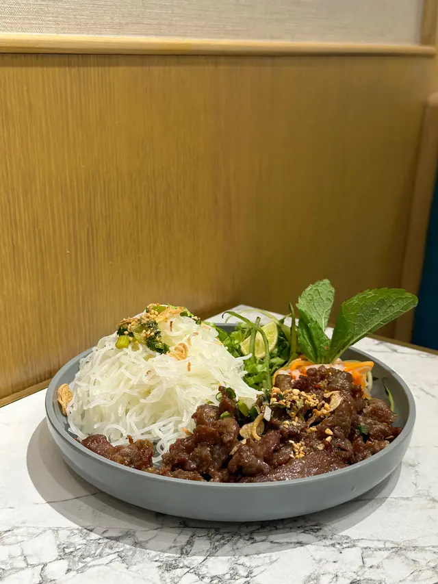 係夏天季節食越南嘢,撈檬會係不二之選~餐廳內的燈光光猛,有卡位的位置坐落都很舒適🔸牙車快$68呢個名好得意雞絲與七彩鮮蔬在酸辣汁中起舞,彷彿河內街頭陽光照進碗裡🔸豬扒撈檬 $68肉汁隨魚露淅瀝滲入檬粉,豬扒烤到好香口🔸順化香茅牛肉撈檬 $72香茅醃製的牛肉片柔若綢緞 🔸椰青水慢煮扣肉(米飯)$75琥珀色五花肉疊成寶塔,慢煮後脂膏化作蜜糖流心,椰青清甜滲透每絲纖維,拌飯醬汁閃著誘人油光✨ 跟餐小食+$25 有蒸粉包(2件)和 +$20越北炸春卷(2件)🔸芒果素雞絲米紙卷 $58米紙如蟬翼輕裹彩虹內餡,金黃芒果條+翡翠青瓜+雪色素雞絲,蘸特調花生醬如踏進東南亞雨季 🔸蜂蜜玫瑰柚子茶 +$8因為依杯係特色飲品,所以就加咗$8。玫瑰味香,晚餐時飲適合因為玫瑰係安寧的~🔸熱咸柑桔水跟餐飲熱飲就唔使另外再加錢咸柑桔味濃郁…查看更多