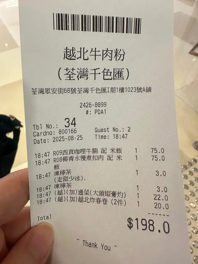 [✨荃灣 越北牛肉粉 ]#荃灣 #千色匯 #越北🔸西貢咖喱牛腩 配 米飯 $75牛腩軟嫩入味,咖哩汁香濃辣度適中,配搭白飯絕配,滋味滿分!🔸椰青水慢煮扣肉 配米飯 $75扣肉軟軟淋淋,帶有淡淡椰香清甜,肥而不膩,份量多,啖啖肉岩晒食肉控,特別推介!! 🔸通菜(大頭蝦膏灼) 跟餐+ $22馬拉盞香氣濃郁,通菜鮮嫩爽口,跟餐份量都好多,CP值好高!🔸越北炸春卷(2件) 跟餐+ $20春卷外皮金黃酥脆,內餡豐富,作為開胃小食非常合適。🔸凍檸茶 跟餐+ $3————————♡♡♡♡♡♡————————🥂總結CP值好高嘅連鎖越菜餐廳,菜式穩定美味,份量充足,適合喜愛地道越南風味的食客。📍越北牛肉粉🏠荃灣眾安街68號荃灣千色匯I 1樓1023號舖 #jmhkfoodie #hkfoodie #hkeat #hkeats #hkfood #hkig #hkgirl #food #hongkongfood #hongkongfoodie #852food #香港美食 #香港食評 #香港餐廳 #為食港女 #荃灣 #荃灣美食 #荃灣好去處 #荃灣西 #荃灣餐廳 #越北牛肉粉 #越北 #越南菜…查看更多