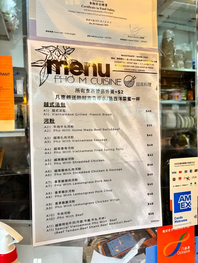 越南料理 (葵涌) 網址: https://s.openrice.com/QrbS0U6y6W0 地址: 香港葵涌青山公路 - 葵涌段438-442號名德大樓地下1D及1E號舖 電話: +852 64981222