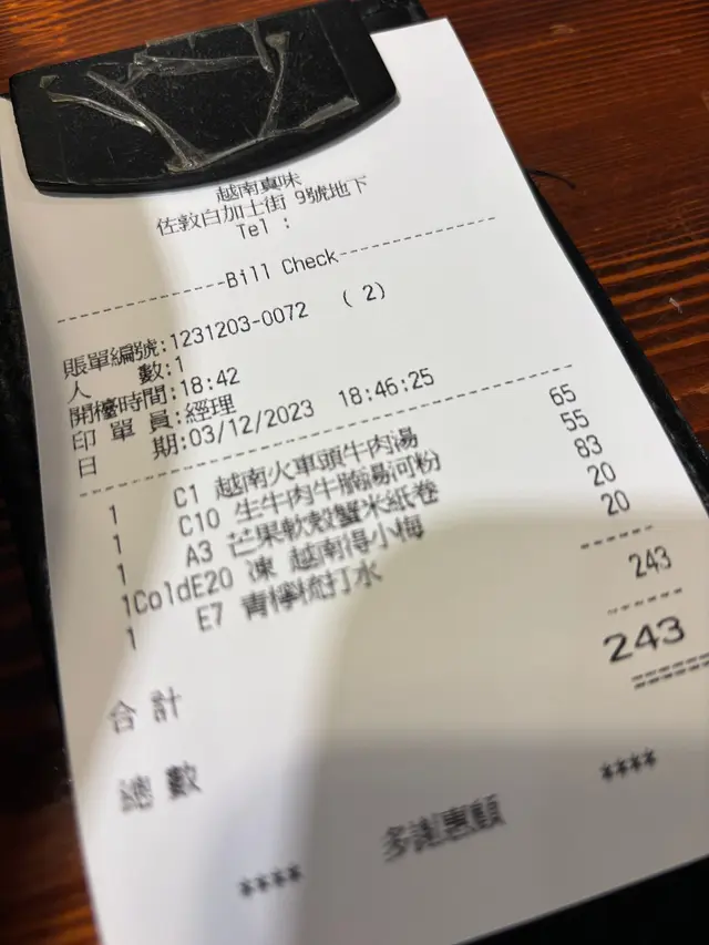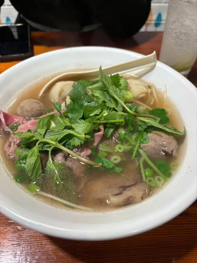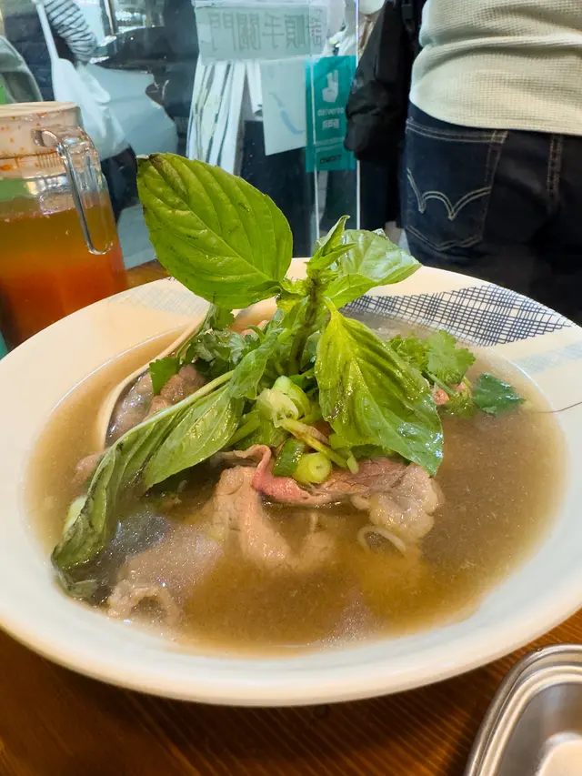 平價越南粉, 月底糧尾救星. 這間是正宗越南人廚房.🥢越南火車頭湯粉 HK$65牛柏葉, 生牛肉, 熟牛肉, 牛丸 份量不少, 舖滿了整個碗. 九層塔當然是少不了, 香味十足. 湯頭清甜不是味道湯底, 喝完不會感到口渴. 牛肉味足, 牛丸彈牙. 🥢青檸梳打水 HK$20正常操作, 略嫌糖水太多, 偏甜, 下次可以叫少糖水.另外也叫了 🥢芒果軟殼蟹米紙卷 HK$83, 但忘了拍照, 但也好好吃, 下次記得再下單. #越南 #火車 #頭湯粉  #牛柏葉 #生牛肉 #熟牛肉 #牛丸查看更多
