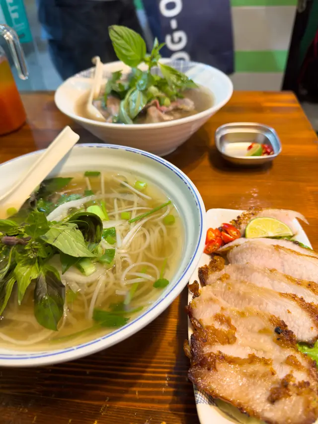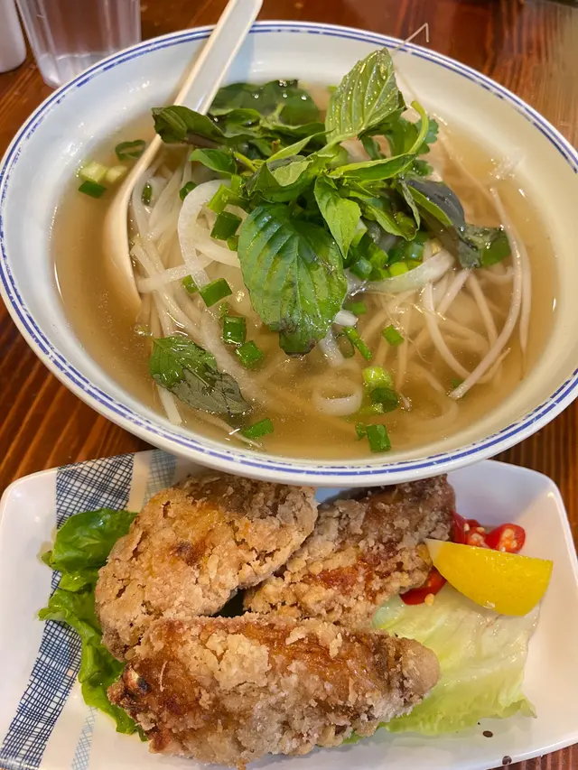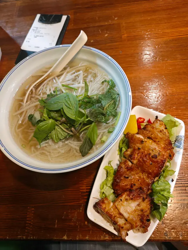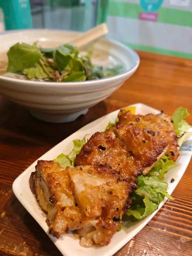 係門口已經有一陣陣既越南湯香,吸引咗好多人係門口排隊。睇一睇佢餐牌,見到好多唔同既款式,即管去試一試啦。入面坐既位置唔多,不過好整潔!見到好多人都揀湯粉,所以都揀佢一定無錯。豬扒雞翼湯粉一黎到見到份量好多,真係好抵食,咁大份都只係$60左右。講返啲食物,豬扒同雞翼都好新鮮,同埋都好有味道,唔會得出面個皮有味。仲要一咬落去好脆好香,我覺得值得一試!至於佢個湯粉,都做得好好,好有越南風味,香濃同都帶有少少甜香。查看更多