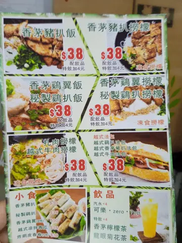喺荔枝角做開嘢嘅朋友都知道好多人隱世小店,真係要好好地尋寶🤤。呢間外賣小店位置偏僻,系一幢大廈門口有廣告牌,再行入去先見到呢間鋪。按我觀察,應該系兩夫妻打理,家庭式味道,但十分出色!🥰🥰你唔好以為位置偏僻就人氣低,要食到呢間野都需要事先準備!如果唔系,都係食白果🤪!如果當日一早已經想食佢,要10點前要用電話落單,講好幾時去拎同食咩種類,如果唔係試過現場買,老闆叫我等兩個鐘 🙈 等到中午放飯時間,你會發覺呢間小小店會好多人排隊拎飯!🫣🫣🫥推薦:🌟香茅豬扒飯($38):性價比之王,至少有4塊大豬扒鋪面,邊邊仲會有酸蘿蔔解流,再加上蔥油,一絕!如果嘅女仔,其實真係可以share,同樣好飽!另外買飯會再送多杯花茶☺️🌟炸網皮春卷($30/6):香脆可口,絕上辣雞醬,好好味!必試!🌟香茅雞翼($30/4):正常發揮,可試 ☺️味道:🌼🌼🌼🌼🌼服務:🌼🌼🌼環境:🌼🌼🌼抵食:🌼🌼🌼🌼🌼🌼🌼🌼🌼🌼🌼