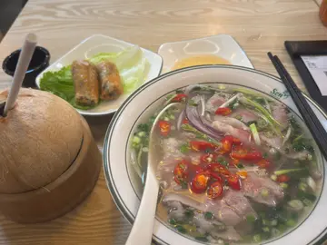 喺旺角睇OpenRice搵到女人街有生牛肉河粉,見唔少好評,當然即刻去試吓啦!-環境當日我去食嘅時候係下午茶時間,客人人丁單薄,只有我一台同另外一台,下午茶時間冇乜人,坐嘅位置冇乜特別。-服務侍應下單服務態度很好,餐廳沒有主動提供紙巾,需要向餐廳問!-食物下午茶嗌咗個生牛肉河粉+春卷2條+米紙卷先講講個春卷係幾好食,米紙卷就一般!生牛肉河粉不過不失,可惜餐廳提供既辣椒唔夠辣!不過椰青(好貴),但係睇落其實似椰皇,好飲甜爽!整體不過不失,不要太大期望!如果下午茶時間嚟講算貴,2人共消費$220:(…查看更多