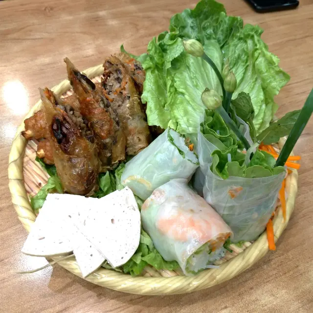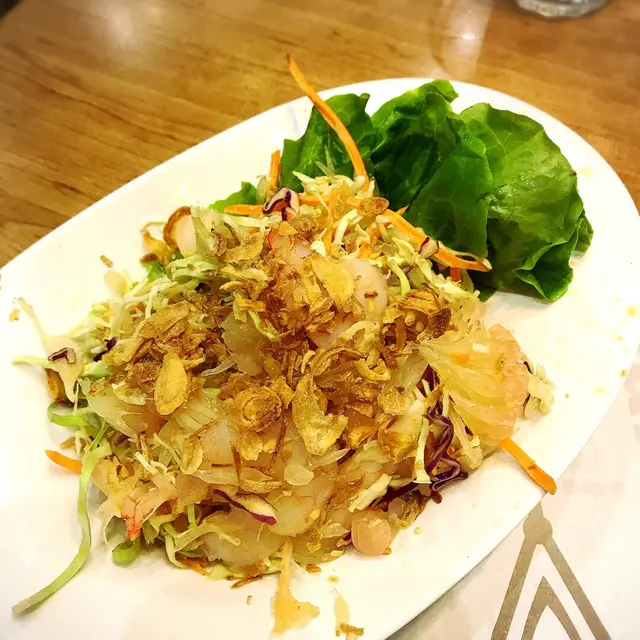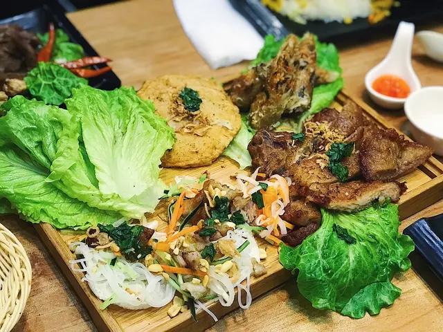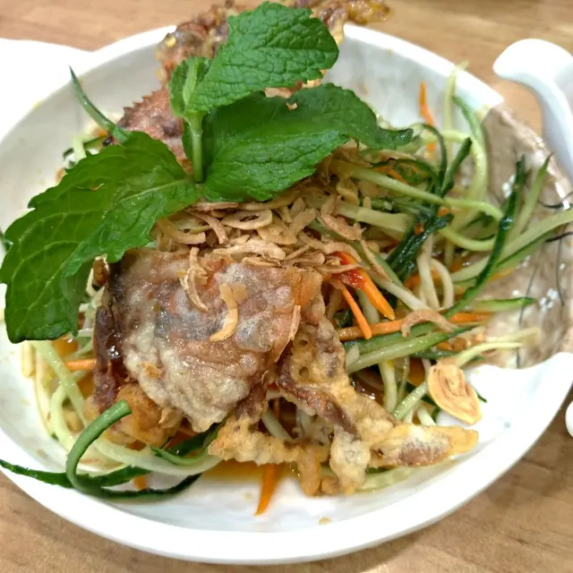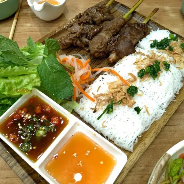 午市黎到都多人。不過等左唔駛5分鐘就有位。坐低左叫人落單。叫左好一陣子先有人理。天氣太熱。決定食撈檬。叫左串燒雞撈檬。碗檬份量算多。配料有炸蒜生菜青瓜蘿蔔絲花生。有3串串燒雞。每串大約有3舊雞。份量算足。但味道普通。冇乜香料味。又冇乜串燒香味。淨係味道唔會食得出係串燒。肉質唔算乾又唔算滑。撈檬汁偏酸。似乎調味時啲醋落得好重手。同平時喺其他越南餐廳食開嘅唔同味。叫左凍檸茶走甜+$3。茶味不足。$62話平唔平。話貴唔貴。份量足但整體味道一般。…查看更多